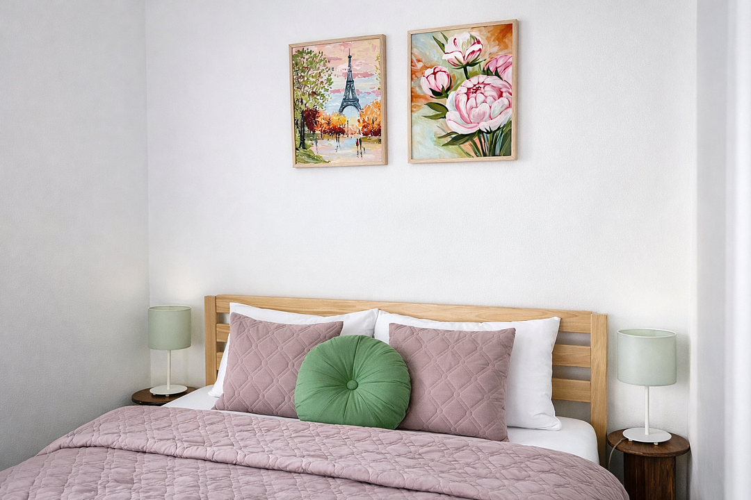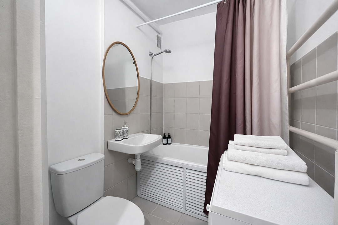 К вашим услугам удобная кровать, раскладной диван, вместительный шкаф, плазменный телевизор, Wi-Fi, кондиционер, стиральная машина и все необходимое для глажки белья.
