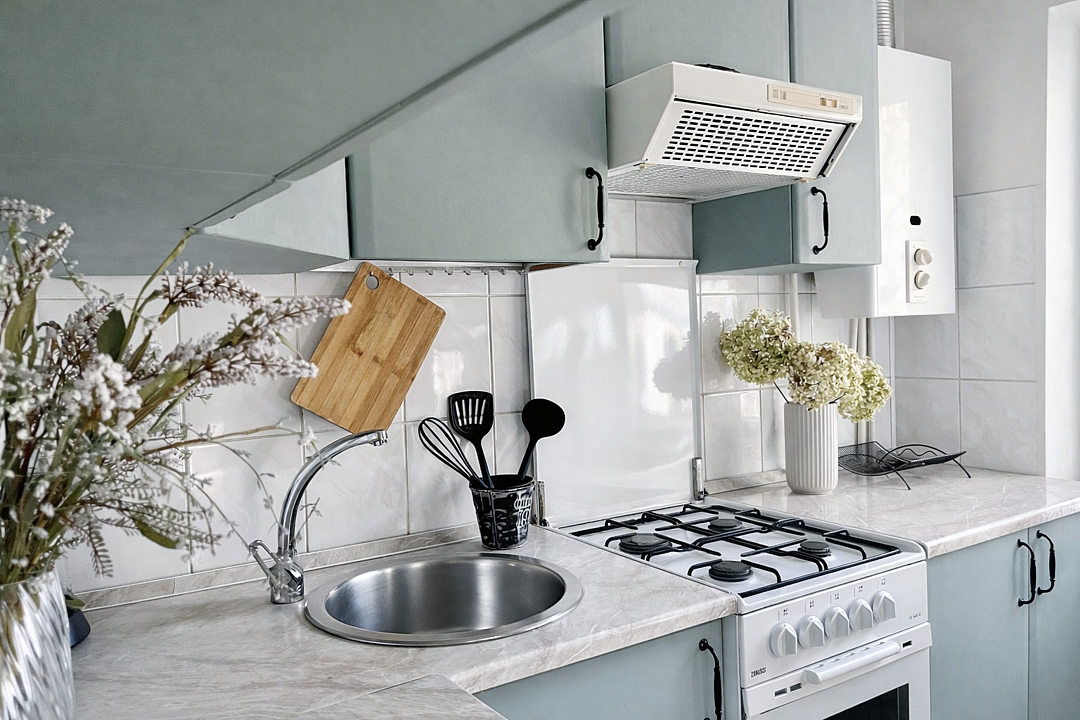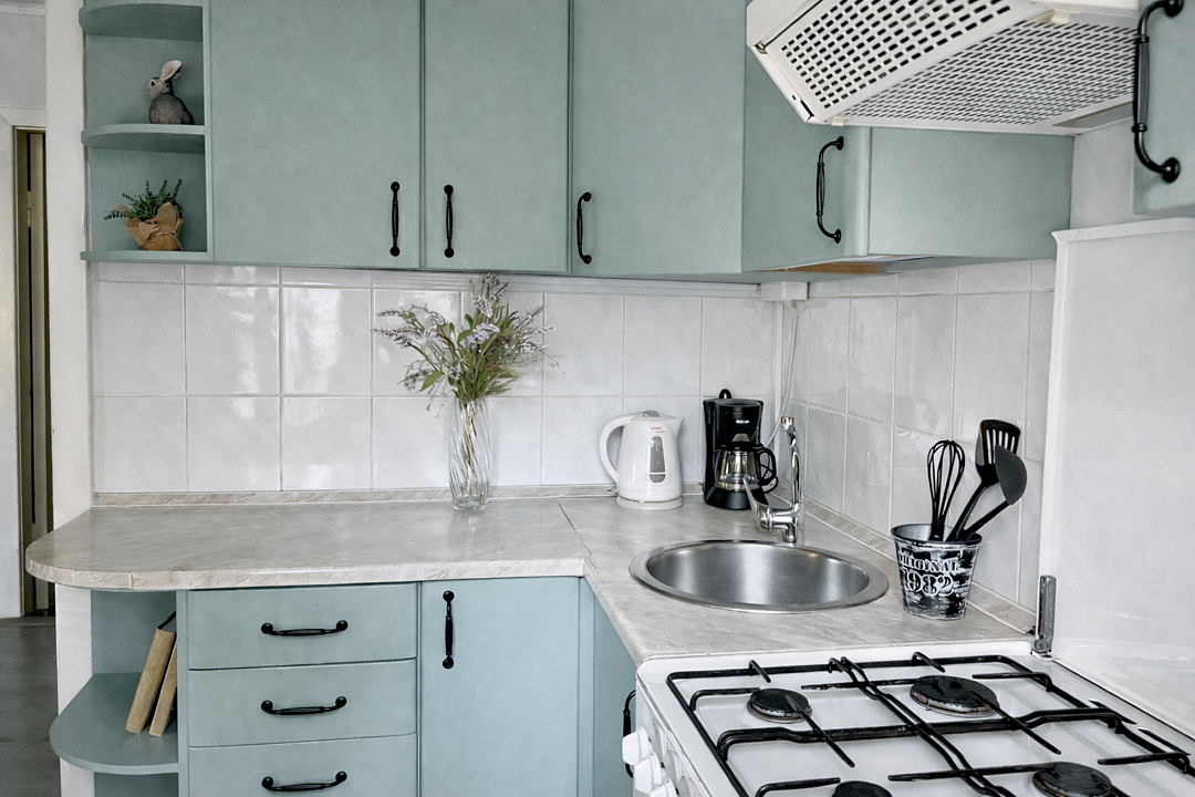 - на кухне холодильник, микроволновая печь, электрочайник, кофеварка, плита и духовка;