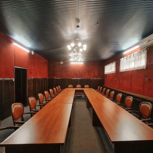 Читать полностьюВ вашем распоряжении комната переговоров на 20 человек, в которой стены обшиты тканью вишневого цвета, что создает торжественную атмосферу, столы расставлены в П-образной форме.