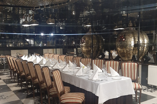 В гостинично-ресторанном комплексе Балтика имеются залы на любой вкус. Вот таким необычным и является зеркальный зал, потолок и стены которого выполнены из зеркал. Расположен на втором этаже, вблизи Лобби-бара.