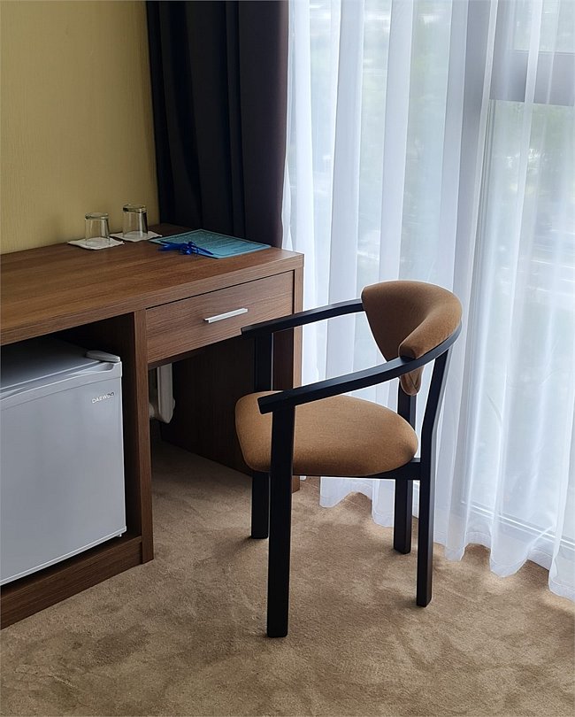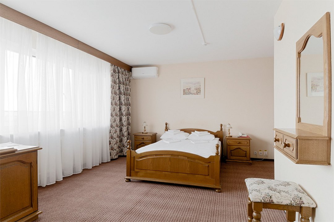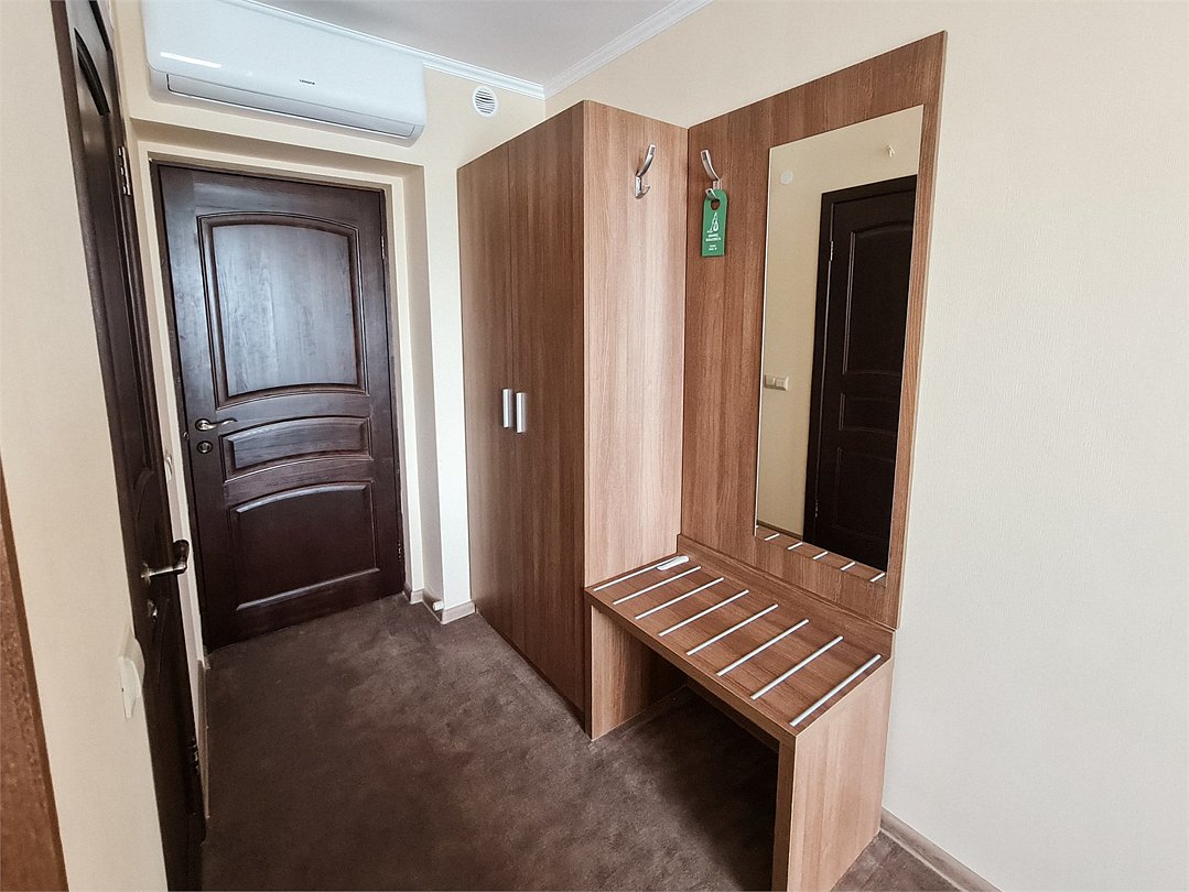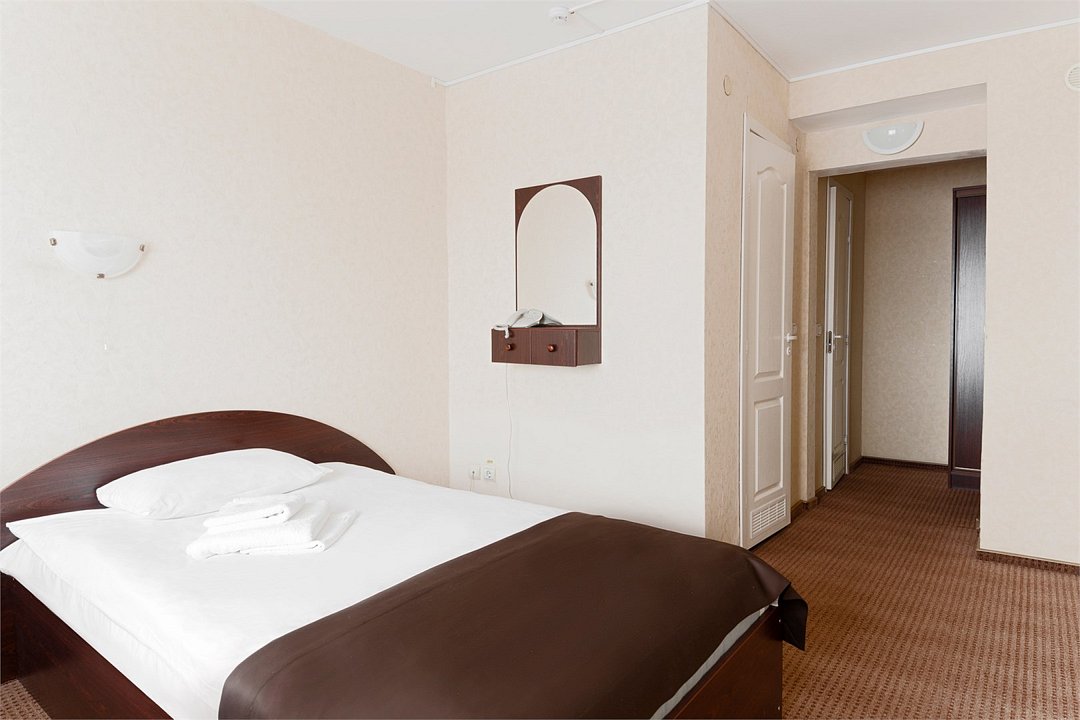Двухместный номер Комфорт Плюс с раздельными или общей кроватями с видом на город - однокомнатные номера в современном стиле, расположенные с четвертого по пятый этажи отеля, с панорамным видом из окна на окрестности города. Для комфортного пребывания в номерах имеются: ванная комната с ванной или душем и бесплатными туалетными принадлежностями, фен, бесплатный Wi Fi, телевизор, телефон, мини-холодильник. В номере установлены кровати-трансформеры. При бронировании у Вас есть возможность выбрать тип кровати: две раздельные (каждая 90*200 см.) или одна общая (180*200 см.). Установленный в номере кондиционер обеспечит для Вас комфортную температуру. При необходимости здесь могут разместиться с комфортом 3 гостя — для этого в номер устанавливается дополнительное место (кресло системы аккордеон 70*180 см.).Кулер с горячей\холодной водой и гладильные принадлежности находятся на этаже в свободном доступе. Чайник выдается бесплатно по запросу на рецепции отеля.Услуги и удобства