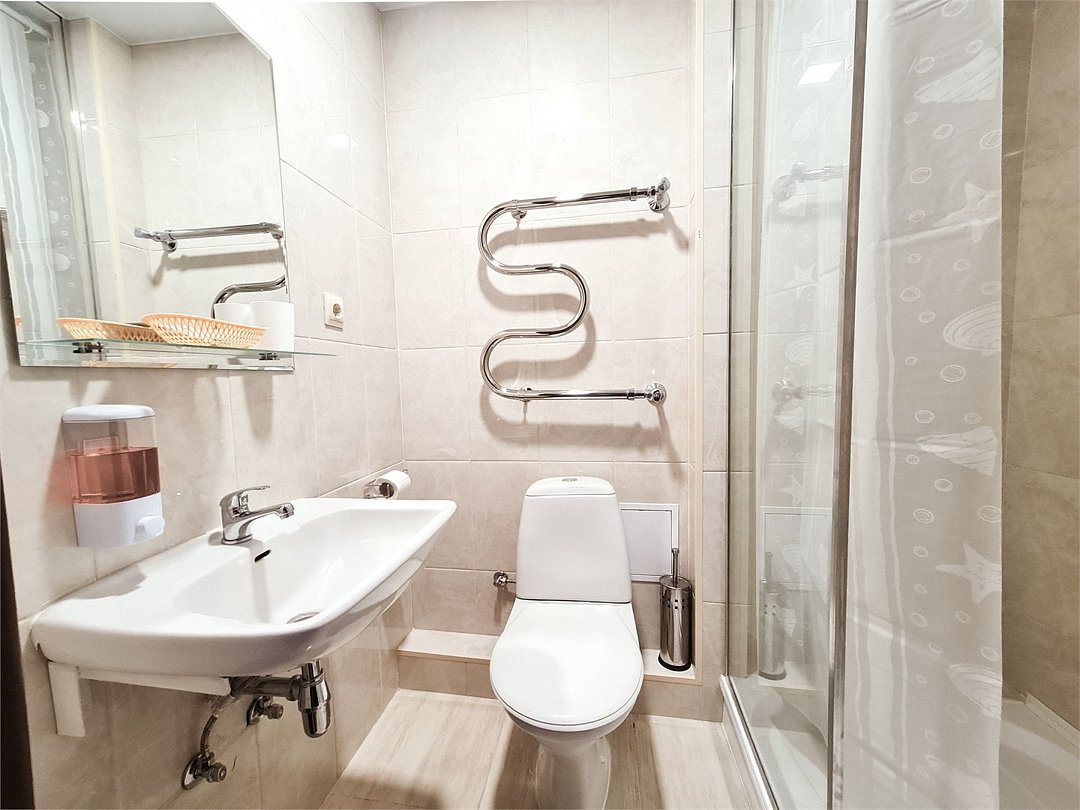 Санузел с душем, ТВ, мини холодильник