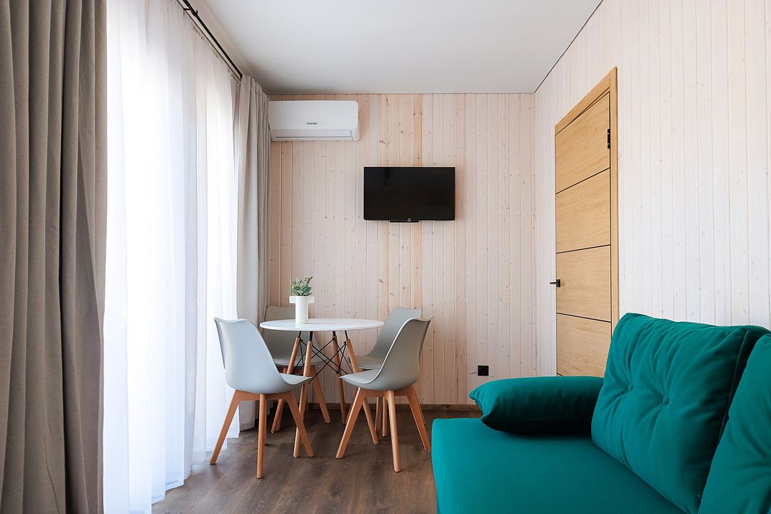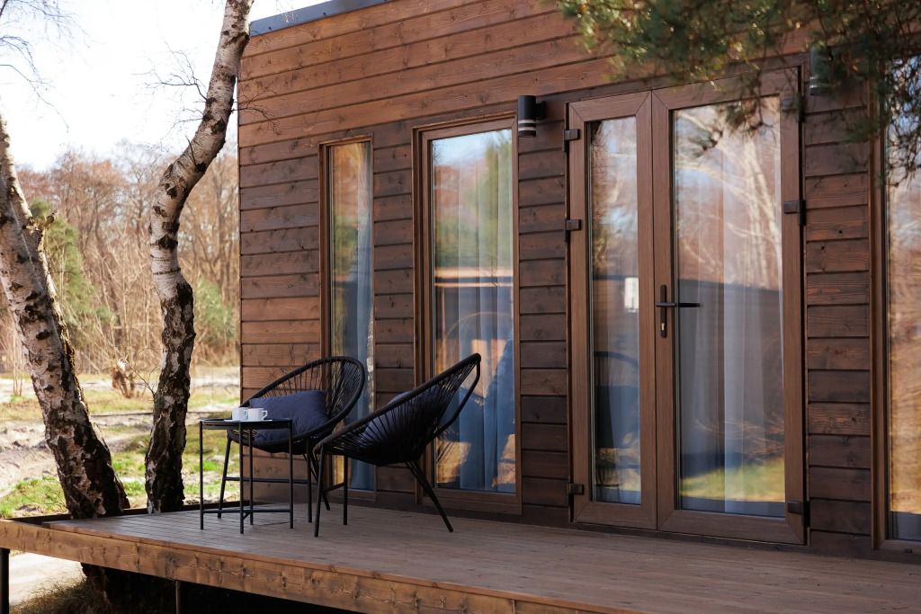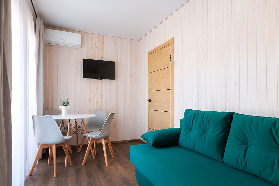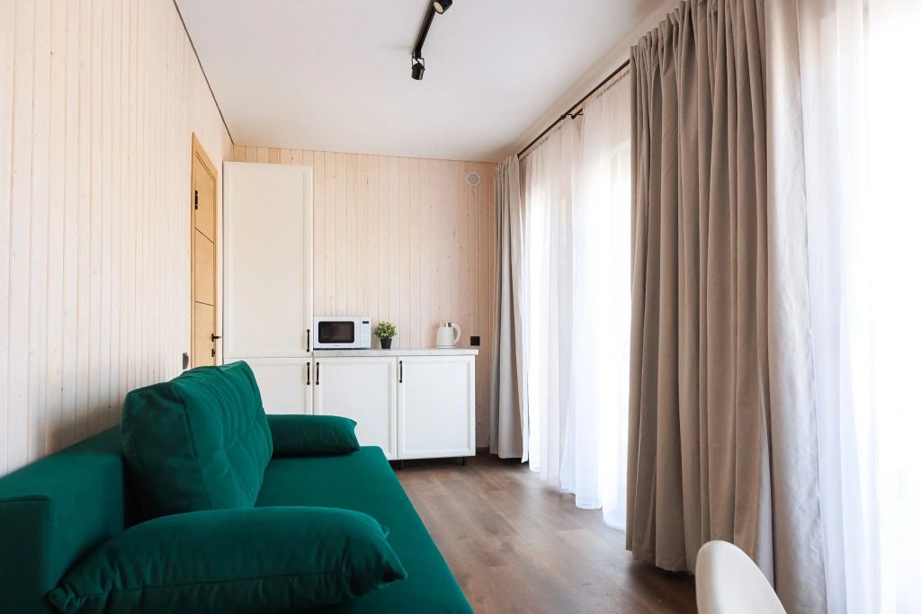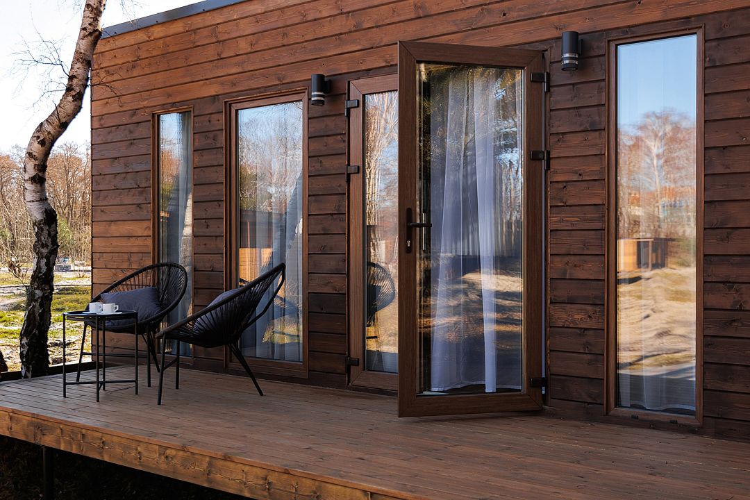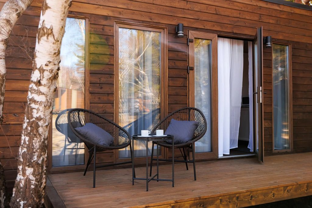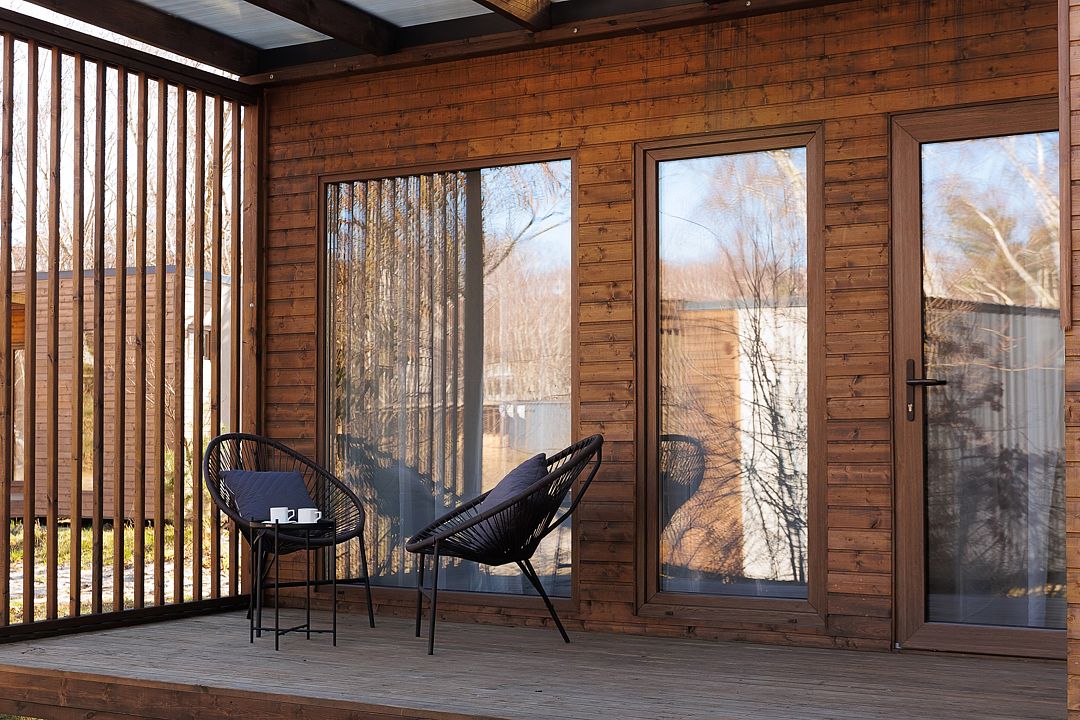 Однокомнатный домик с панорамными окнами и террасой
