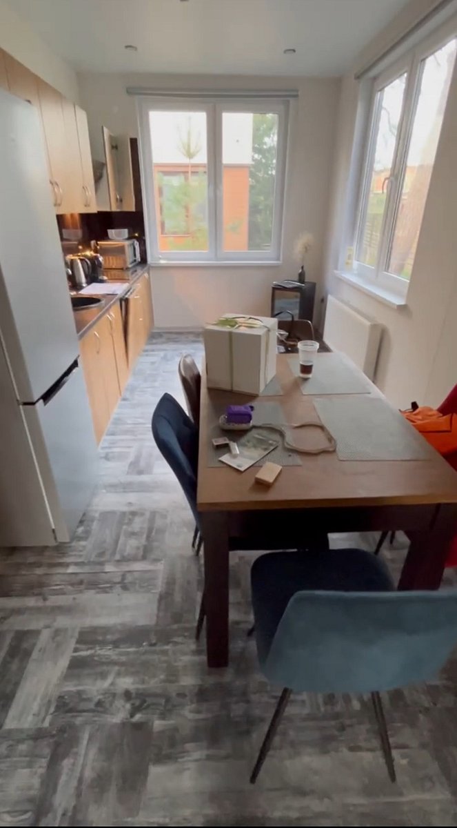 Домик: очень уютный, все сделано для людей. Посудомоечная машина, набор тарелок и бокалов всех форм и размеров. Уютные спальни, вай фай, два санузла. Все чисто и красиво.