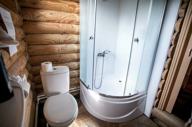 Отдельный двухместный деревянный дом с собственной ванной комнатой.