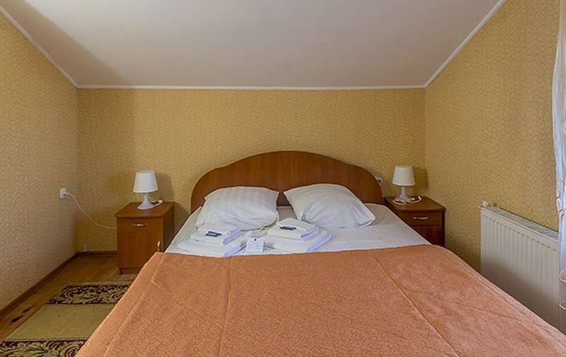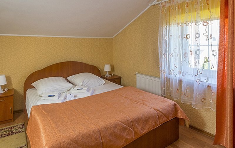 Комната, расположена в главном здании Частного дома, на втором этаже. Общая туалетная комната с душевой кабиной, находится на первом этаже. В распоряжении гостей этой комнаты входит: Шкаф , Телевизор, Сейф, Вентилятор, Отопление, Фен, Туалетные принадлежности.