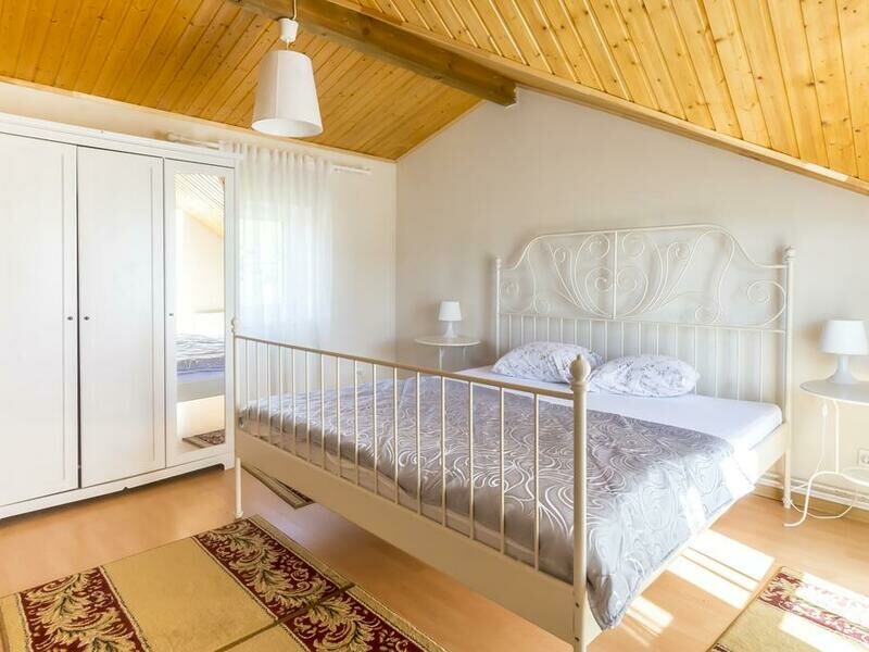 Этот двухэтажный Коттедж для отпуска с бесплатным WiFi оборудован: В стоимость трехместного размещения включены двое взрослых и ребенок до 10 лет. На первом этаже гостиная с камином и телевизором,балкон-терраса, диван,шкаф, стол, кресла, холодильник,ванная комната с душевой кабиной. На втором этаже спальная и детская спальная комната.