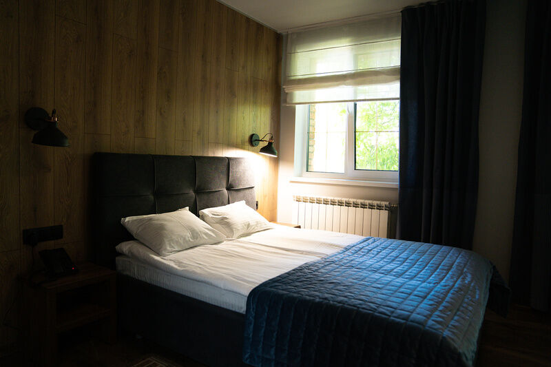 Номер оснащен двуспальной кроватью и собственным санузлом. Из окон открывается прекрасный вид на живописную территорию отеля или реку. Номера данной категории находятся в корпусах «Тимбер» или «Дейма».