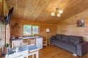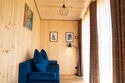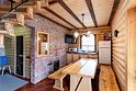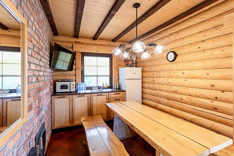 Для удобства гостей коттедж оснащен холодильником, телевизором, бесплатным Wi-Fi, чайником, плитой и набором посуды. Интерьер выполнен из дерева и соответствующе декорирован, что создает удивительно комфортную и тёплую атмосферу.