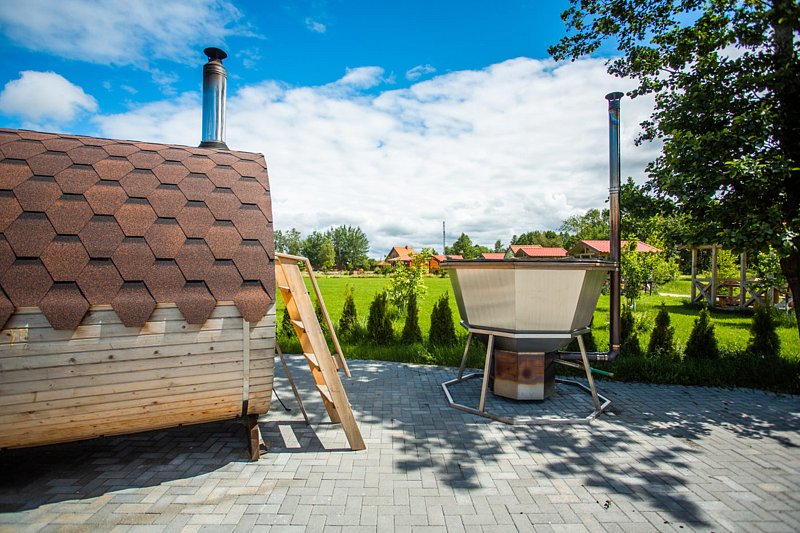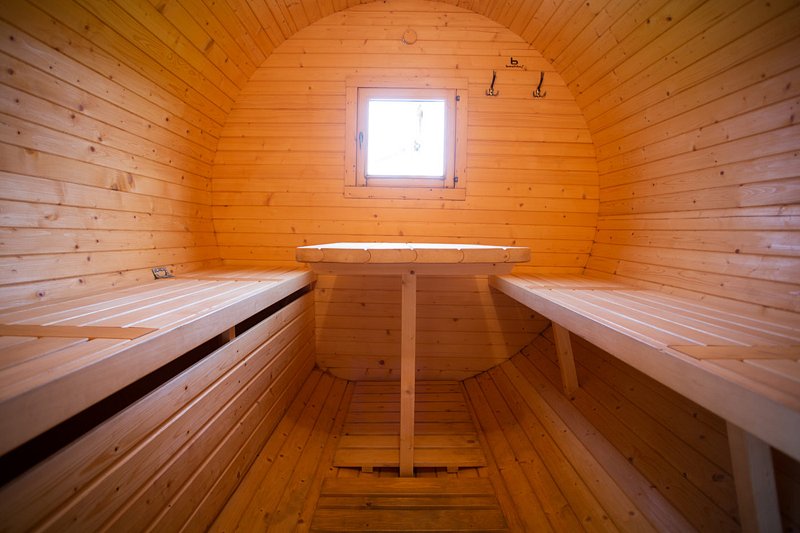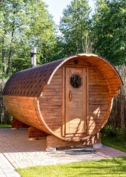 Баня «Бочка», выполненная из карельской сосны, — это место, где круглый год царит атмосфера тепла и уюта. Она рассчитана на шесть человек, что делает ее идеальным вариантом для семейных и дружеских встреч. В бане есть все необходимое: раздевалка, парилка и уютная комната отдыха со столиком, где можно провести время за приятной беседой.