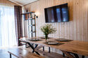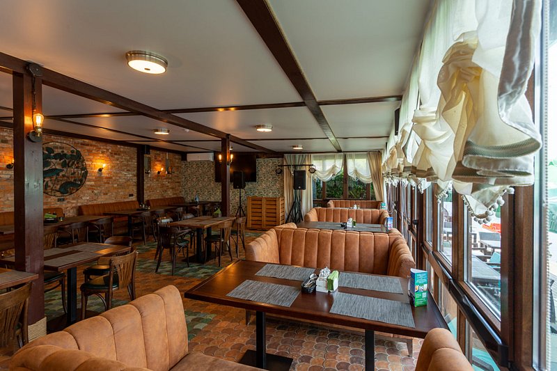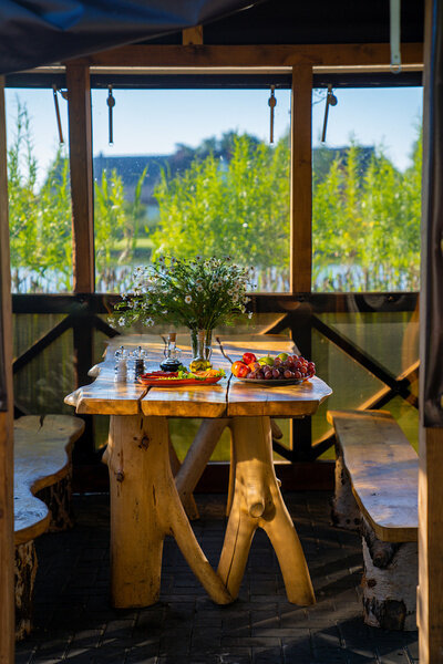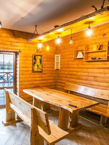 Читать полностьюВнутри располагается просторный зал, оснащенный большим дубовым столом, за которым с комфортом могут разместиться компании из 8-10 человек. Открыв двери на террасу, вы сможете насладиться живописным видом на реку, что добавит особый шарм вашему отдыху.