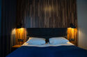 Номер является двухкомнатным, оснащён двуспальной кроватью и одноместным диваном в одной комнате, а также большим двуспальным диваном в другой. В каждой комнате имеется собственный санузел, а также отдельный вход в номер.