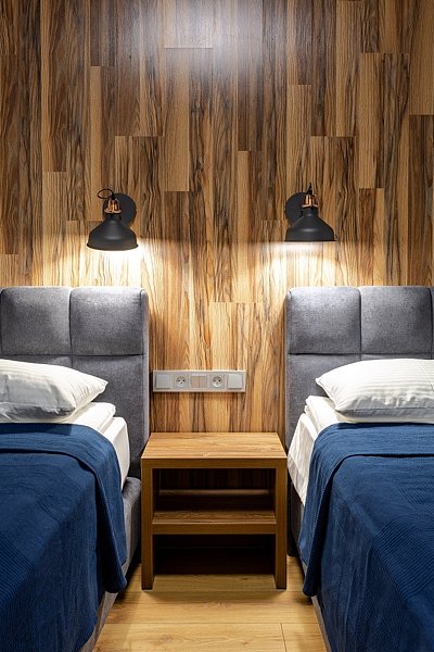 Номер оснащен двумя односпальными кроватями, собственным санузлом. Из окон открывается прекрасный вид на территорию отеля. Номера данной категории находятся в корпусе «Тимбер» или «Дейма».