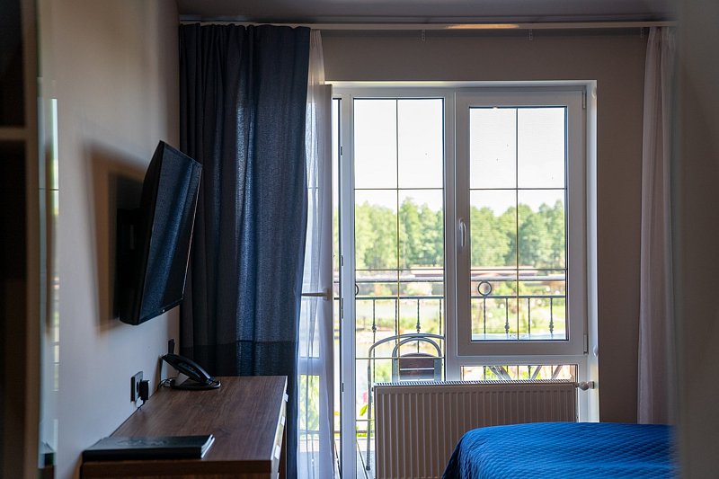 Номер оснащен двуспальной кроватью и двухъярусной кроватью. Из номера открывается прекрасный вид на территорию отеля. Номера данной категории находятся в корпусах «Дейма», «Немонин» или «Причал».