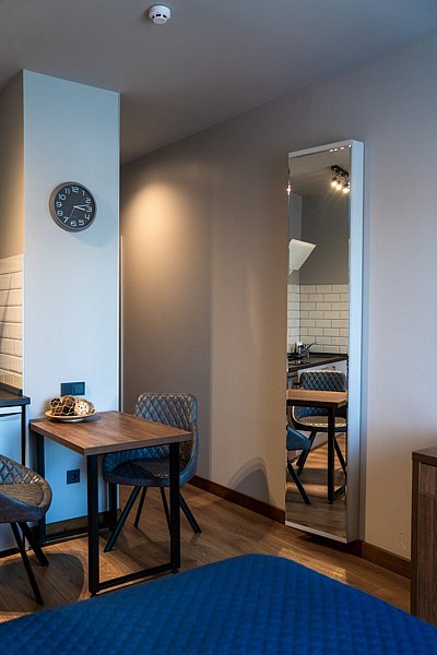 Уютный номер выполнен в ярких тонах в стиле лофт (номер в корпусе «Тимбер») или в современном стиле (номер в корпусе «Дейма»). Здесь есть все необходимое для комфортного времяпрепровождения.
