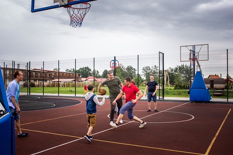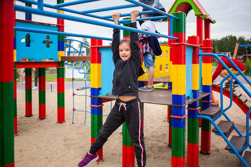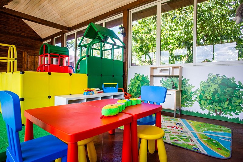 В загородном комплексе дети смогут весело провести время на игровой площадке, где они найдут множество развлечений: песочницу, качели-гнезда, горку, карусель и гимнастические элементы.