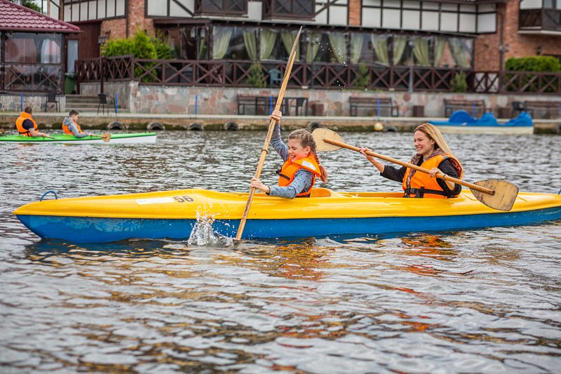 Водная прогулка на катамаране — способ приятно провести время для любителей активного отдыха. Управляя катамараном, гости смогут насладиться живописными водными просторами, открывающими завораживающие виды на реку Матросовка и Куршский залив.
