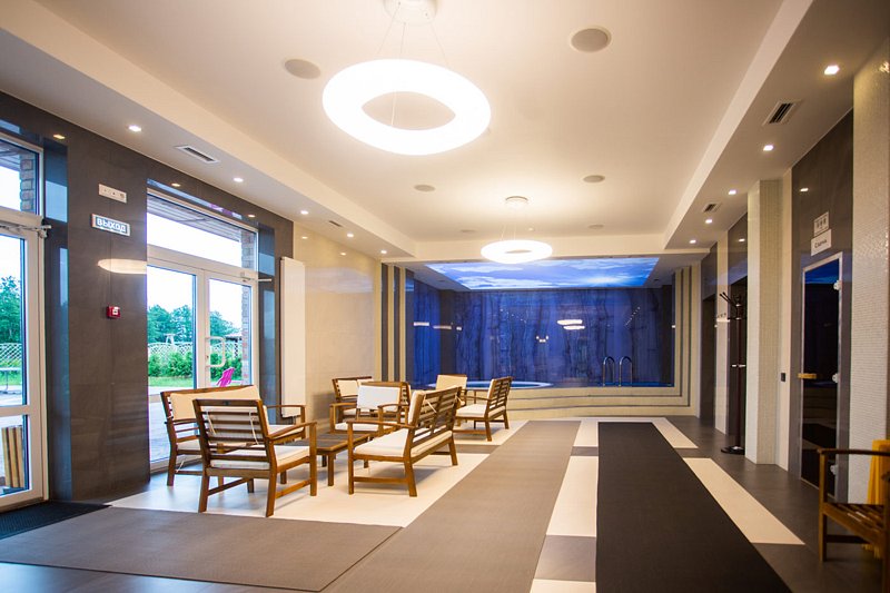 2.На территории есть спа комплекс , заявленные характеристики : хаммам 50 градусов, сауна 90 градусов, баня на дровах 90 градусов ,джакузи, купель и теплый бассейн на улице , что на самом деле : хаммам не работает , сауна работает как надо , баня из 4 дней что я отдыхал в данном комплексе 3 дня работала в диапазоне 60-65 градусов , в крайний день нагрелась до 80 , в джакузи было столько хлорки что резало глаза, у жены аж волосы в местах приобрели зелёный цвет , теплый бассейн на улице и купель как надо