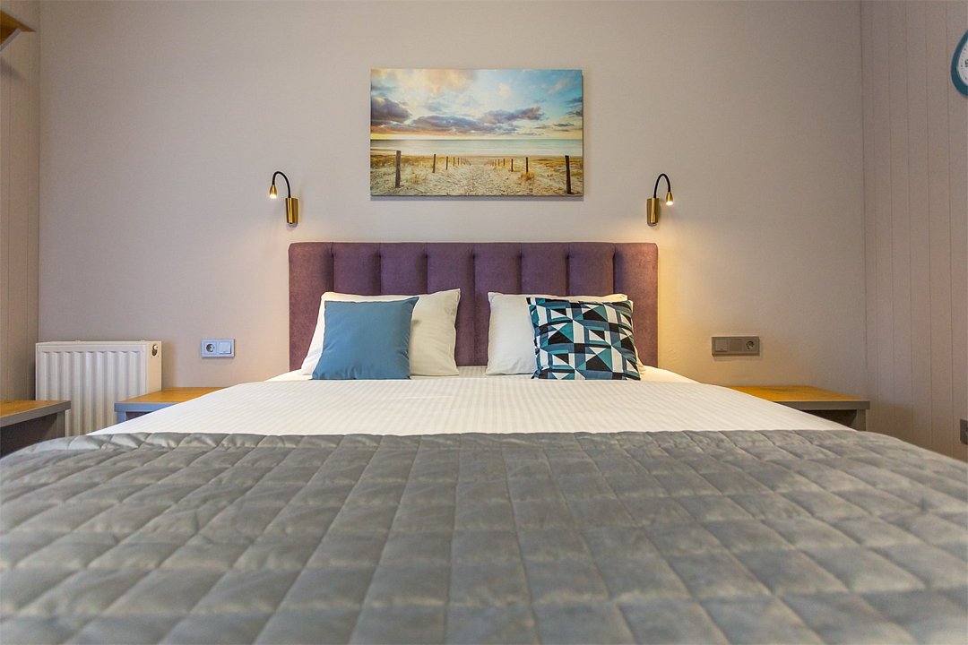 Уютный номер выполнен в ярких тонах в современном стиле (номер в корпусе «Дейма», «Немонин» или «Причал»). Здесь есть все необходимое для комфортного времяпрепровождения.