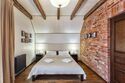 Уютный номер выполнен в ярких тонах в стиле лофт. Здесь есть все необходимое для комфортного времяпровождения. Номер оснащен двуспальной кроватью и санузлом на первом этаже, и односпальными кроватями на втором.