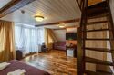 Из больших панорамных окон открывается прекрасный вид на реку или на живописную территорию отеля. Номера данной категории находятся в корпусе «Тимбер».