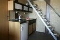 1 этаж: гостиная, встроенная кухня (холодильник, набор посуды, чайник), с/у, диван, ТВ.
