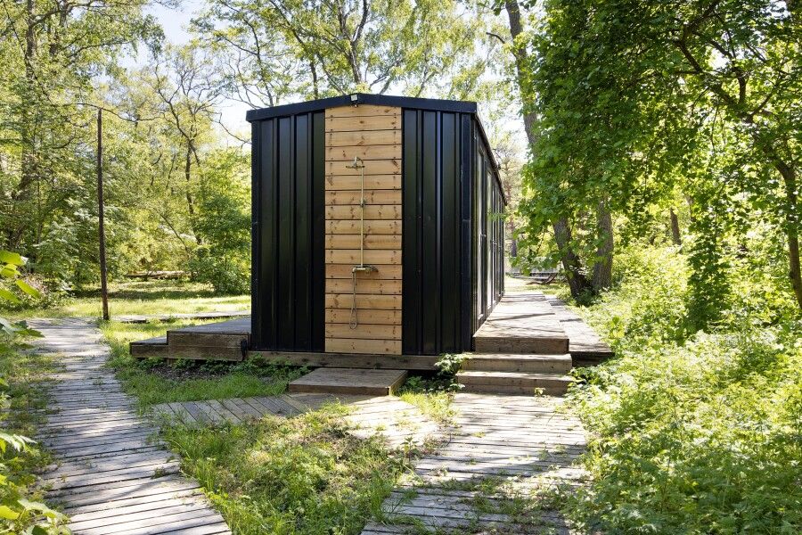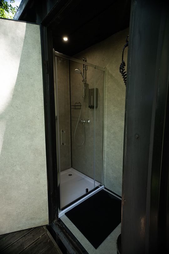 Неподалеку от бунгало расположены благоустроенные туалеты и душевые с холодной и горячей водой, розетками, феном, диспенсерами с шампунями, кондиционерами и гелями для душа.