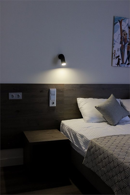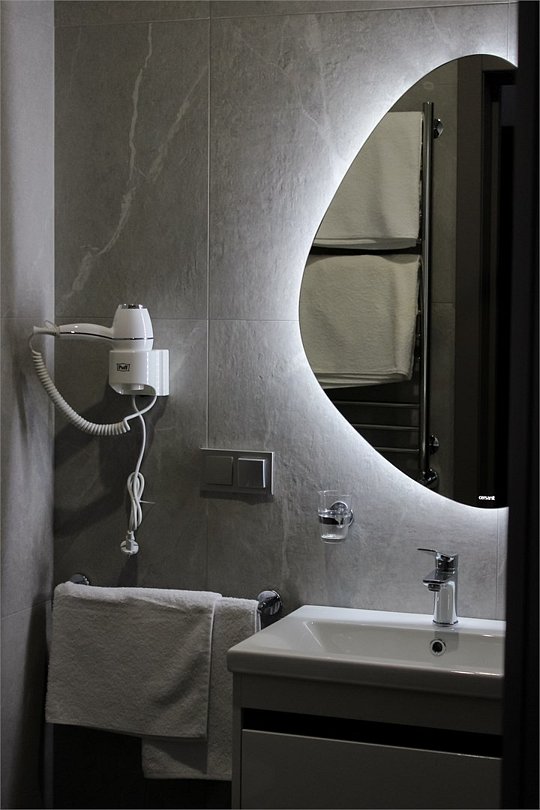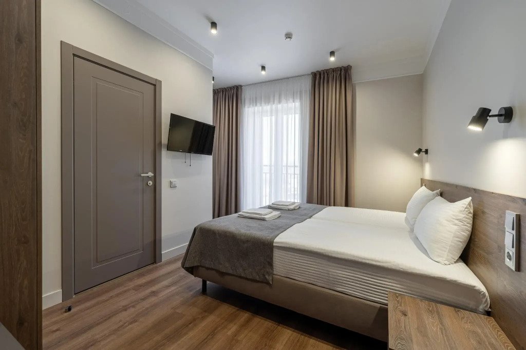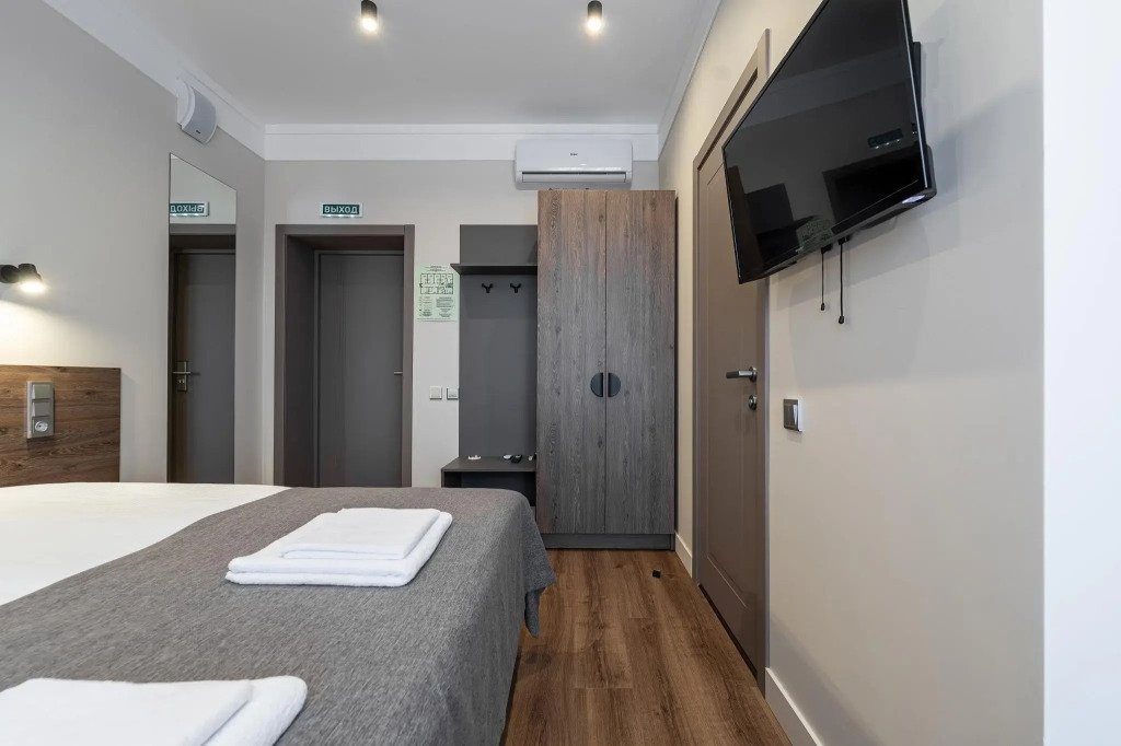 Каждый номер оснащён кондиционером, с/у, мини-баром, шкафом, Smart TV.