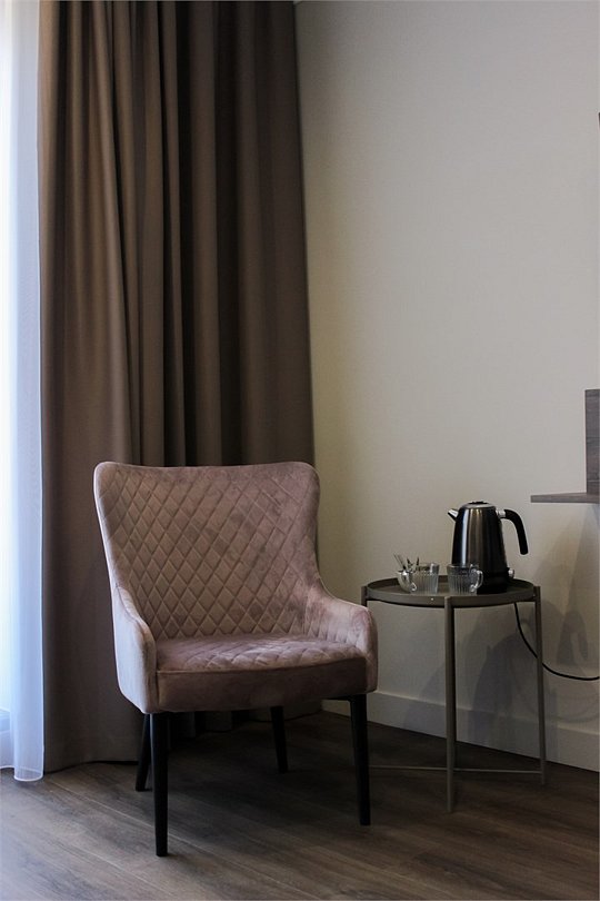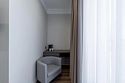 Каждый номер оснащён кондиционером, с/у, мини баром, шкафом, Smart TV.