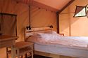 Сафари тент на 3-4 человека имеет комфортную двуспальную кровать, дополнительные места обеспечивает кресло-кровать. Нахождение прямо в лесу, 150 метров до пляжа.