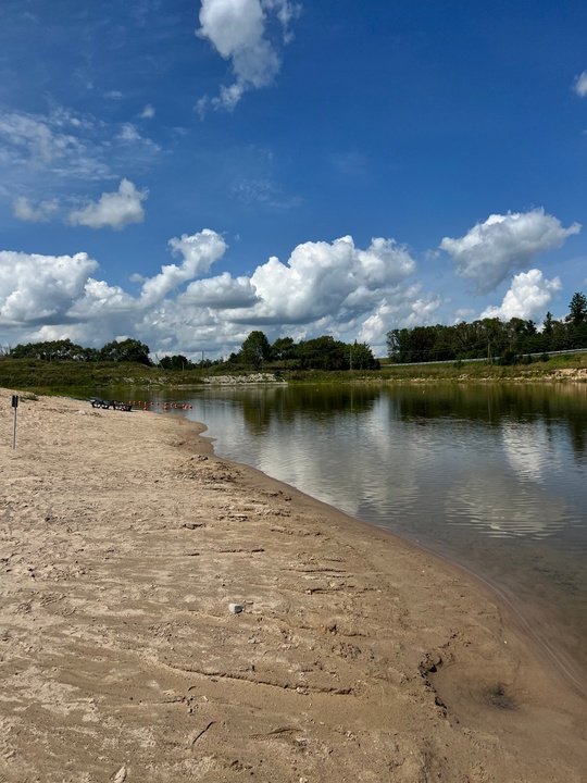 Чистое озеро, мягкий и золотистый песок и удобные шезлонги!