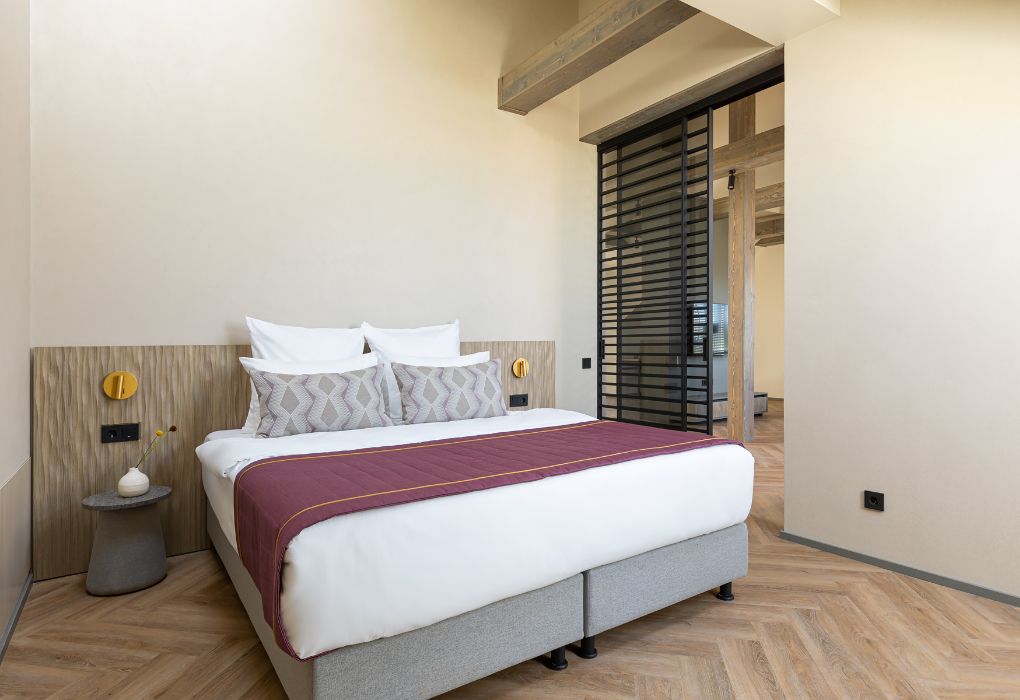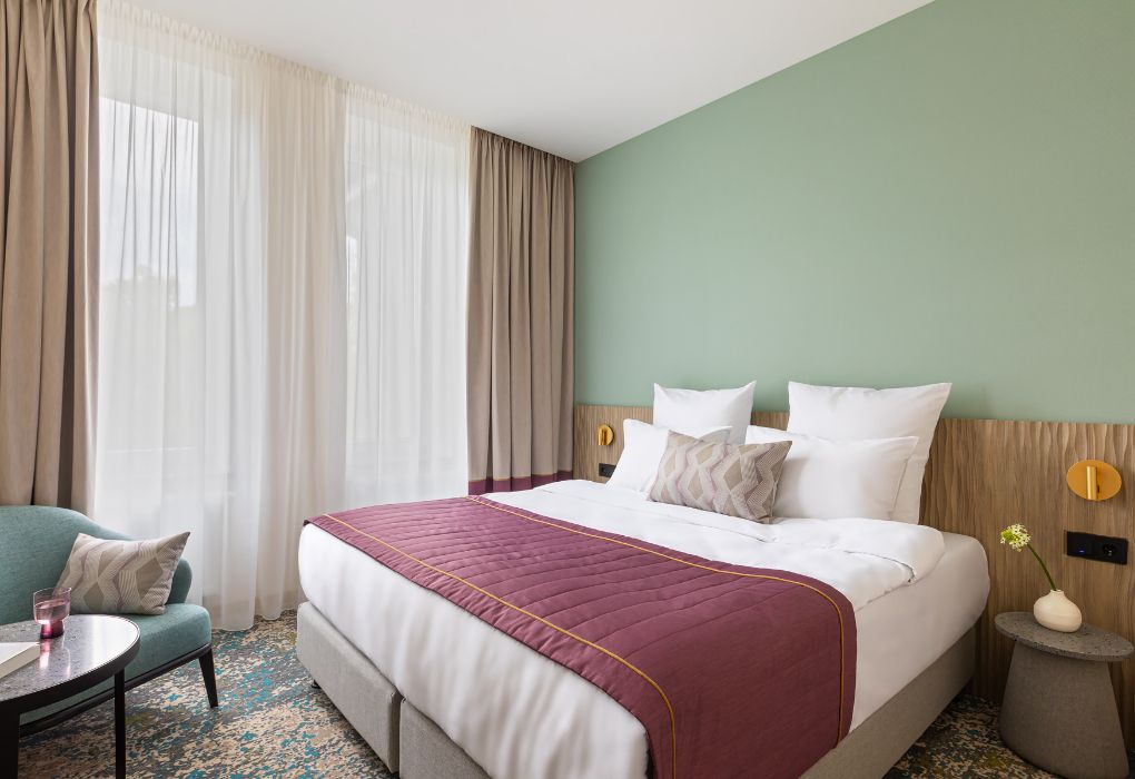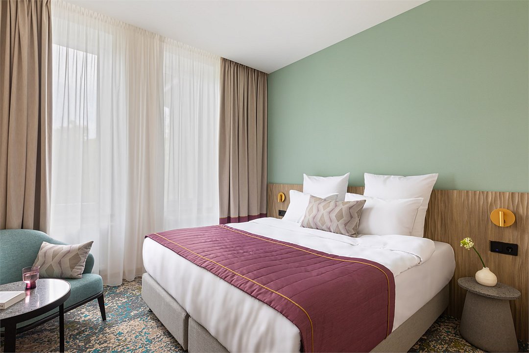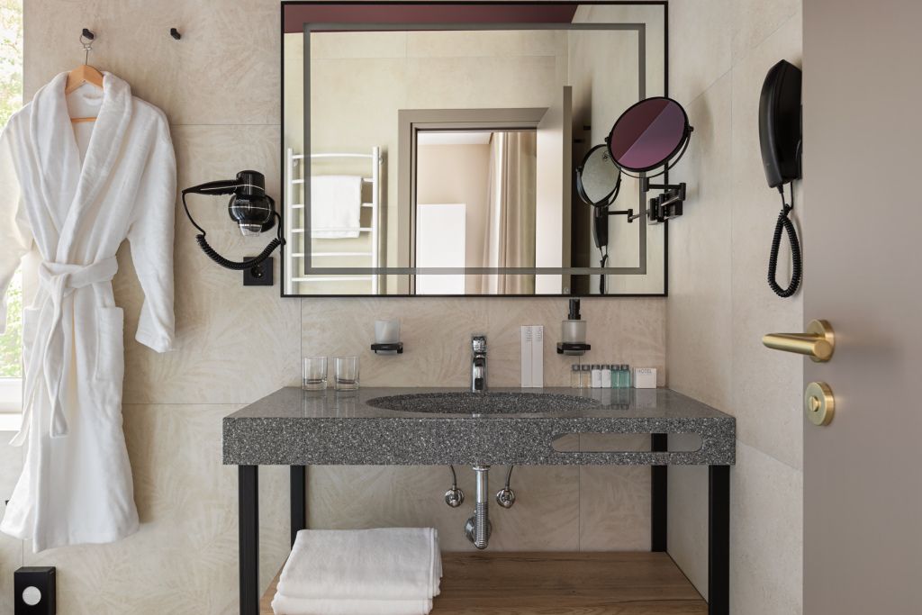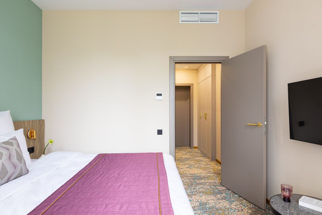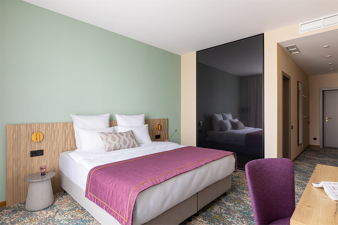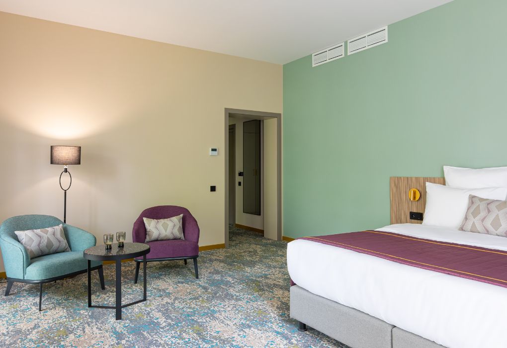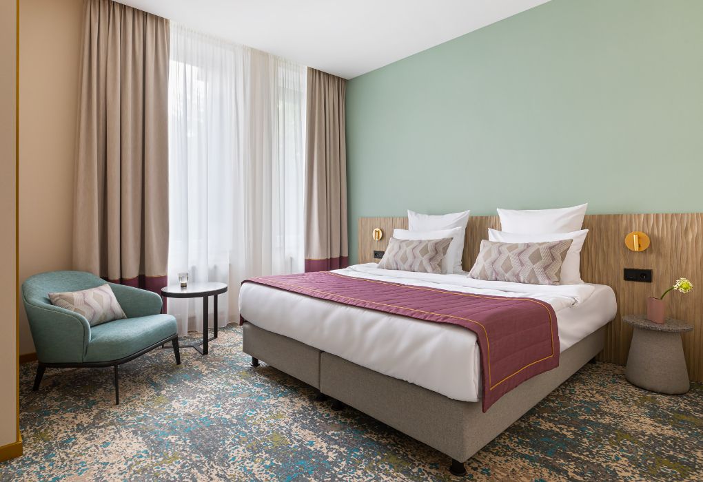 Номера выполнены в спокойных тонах, они идеально подходят для деловых поездок, друзей или семей, которым необходимы раздельные спальные места. В номере две комфортабельные раздельные кровати с ортопедическими матрасами, французским постельным бельём из мягкого хлопка, шторы блэкаут, чтобы вы могли насладиться максимальным комфортом. Также есть просторный шкаф, эргономичный рабочий стол, где вы можете поработать или запланировать свои дальнейшие путешествия.Услуги и удобства
