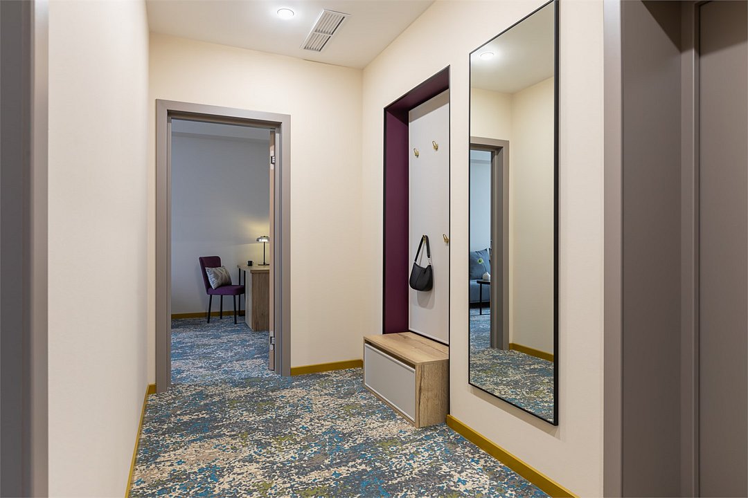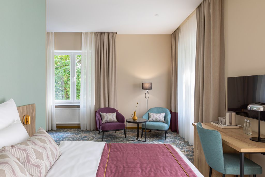 Просторные номера этой категории с двуспальной или двумя раздельными кроватями расположены на втором этаже отеля. Окна номеров выходят на тихую улицу и театр эстрады «Янтарь-Холл». В номере прихожая с большим встроенным шкафом, есть возможность организовать дополнительное спальное место (по запросу), благодаря чему в нем комфортно можно разместиться как в деловой поездке, так и отдыхая семьёй.Услуги и удобства