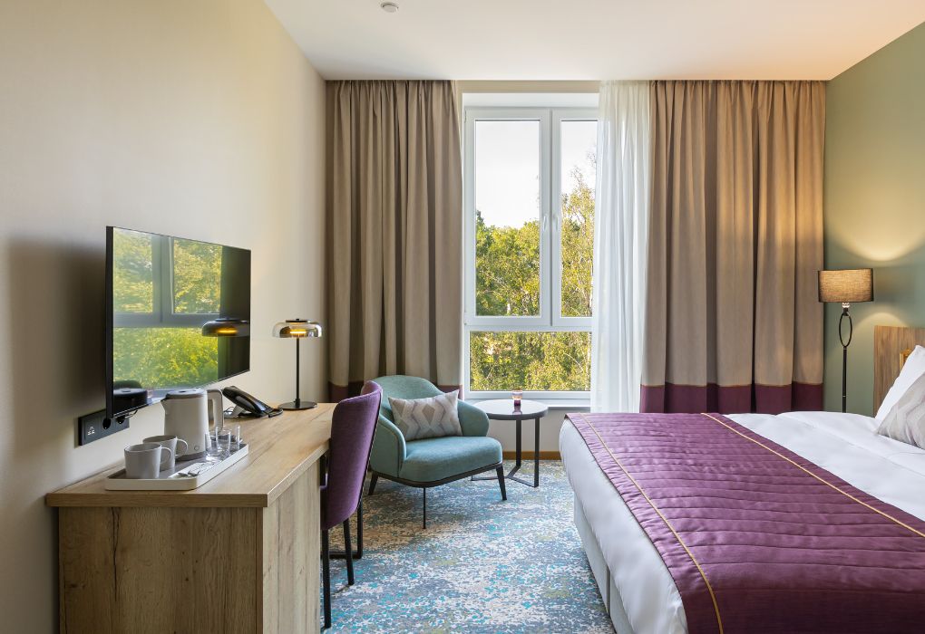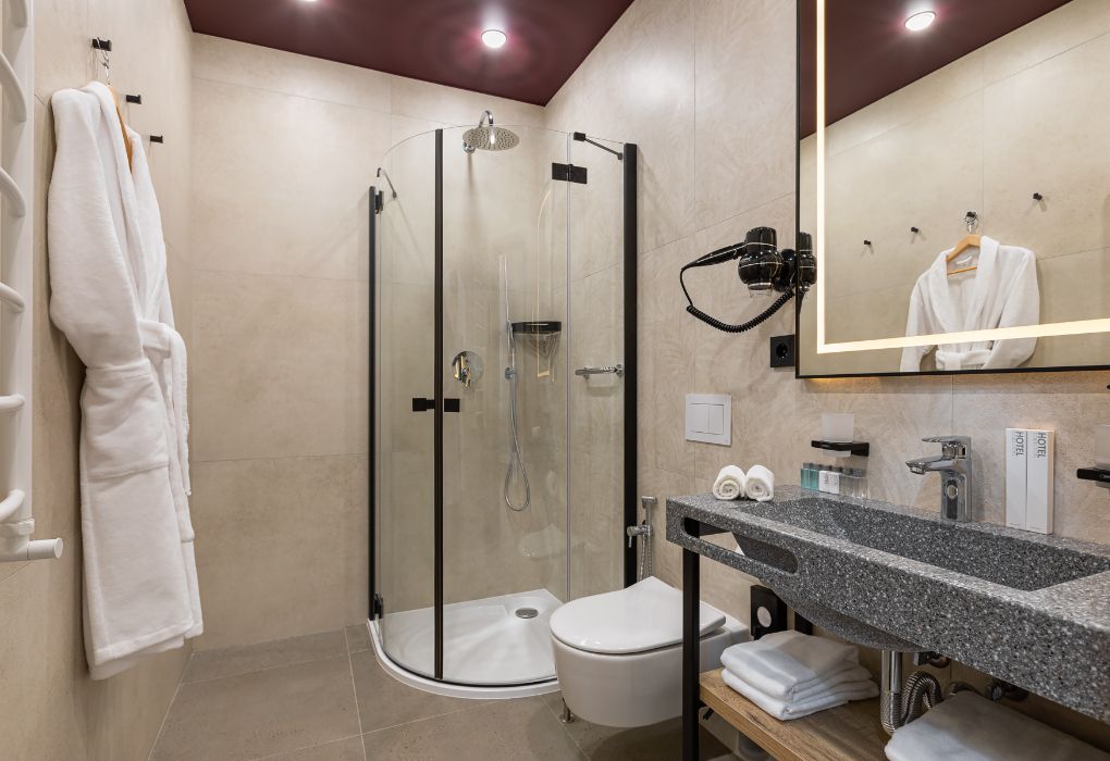 Wi-Fi, интернет, IP-телефон, кондиционер, светильник, фен, электронные замки, душевая кабина, теплый пол, халаты, банные полотенца, тапочки, гигиенические средства, косметические средства, две односпальные или большая двуспальная кровать, гипоаллергенное белье, ортопедический матрас, тумбы, вешалки, журнальный столик, багажная тумба, зеркало, звуконепроницаемые стены и окна, мини-бар, чайный набор, обслуживание номеров, сейф, чайник, унитаз, раковина, косметическое зеркало, питьевая вода, ковровое покрытие, отопление, вид на город, кресло, меню подушек, стаканы, стул, туалетные средства, цифровое тв, внутренний телефон, телевизор с плоским экраном, мини-холодильник, шкаф-купе, теплые полы, номер для некурящих, usb порт, вид на лес, рабочий стол, онлайн-регистрация до заезда, гигиенический душ, без питомцевВ гостиничном номере