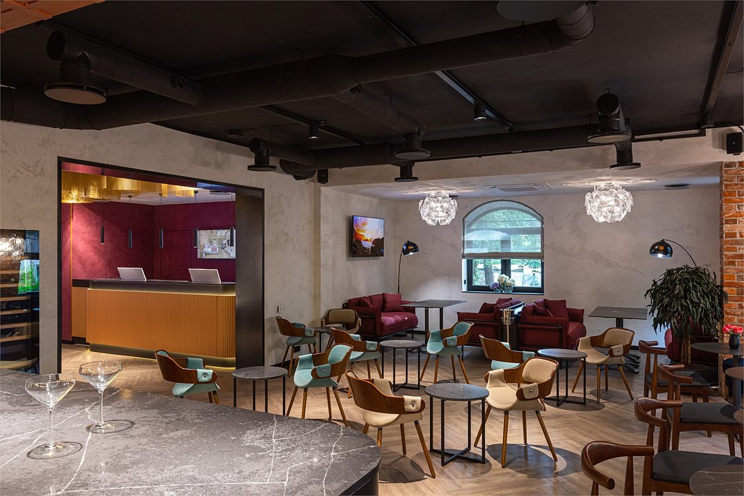 Лобби-бар отличается элегантным дизайном и уютной обстановкой. Стильные столики, удобные сиденья, лёгкая музыка и приятное освещение способствуют отдыху и комфортному общению. Вы можете выбрать уютное место у окна или посидеть за барной стойкой с друзьями, наблюдая как наши профессиональные бармены готовят коктейли.