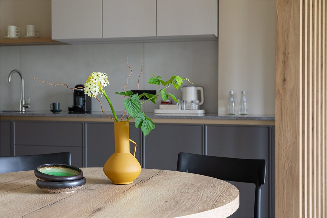 Единственный и неповторимый Люкс "Привилегия" расположен на самом верхнем этаже отеля и занимает площадь 100 кв. метров. Номер состоит из просторной гостиной комнаты с высоким потолком (4 метра) и функциональной кухни. Роскошная спальня с раздвижными стеклянными дверями предлагает уединение, когда это необходимо. Мягкие тона, удобная авторская мебель, много света и воздуха — эти детали никого не оставят равнодушным.Услуги и удобства