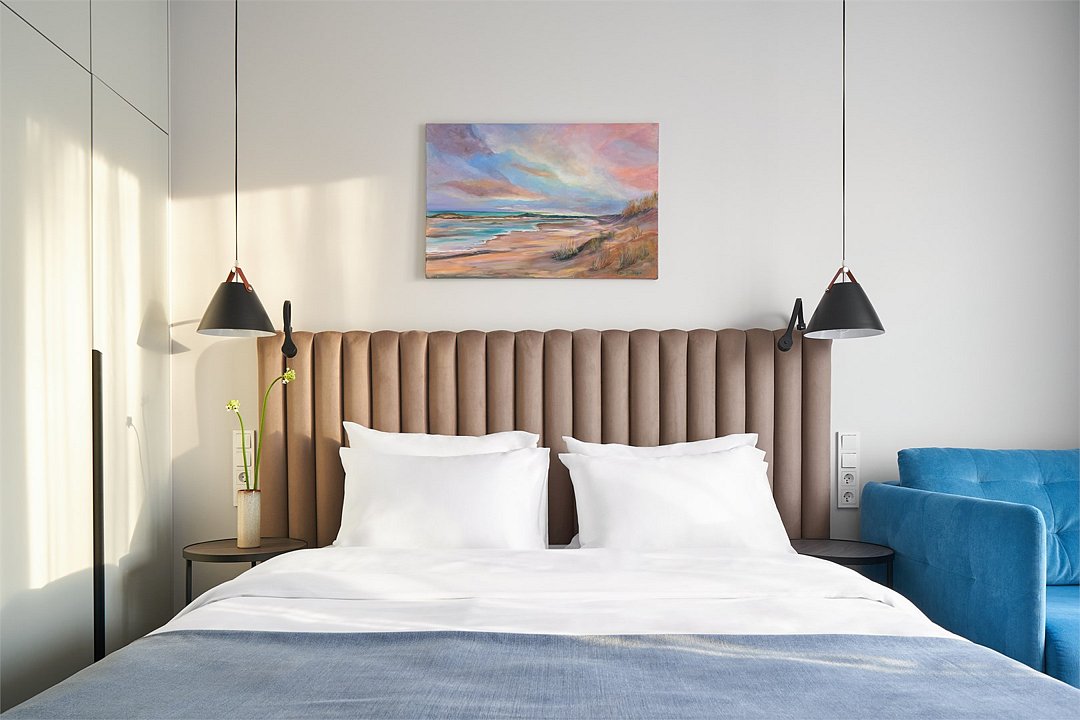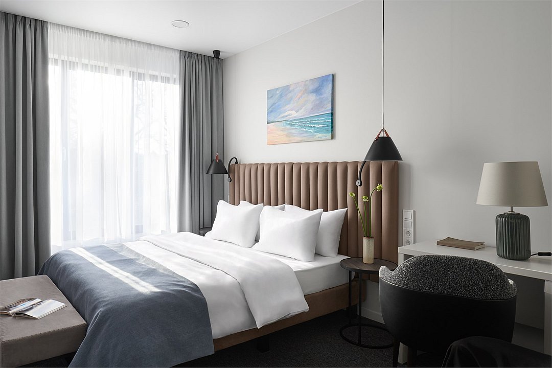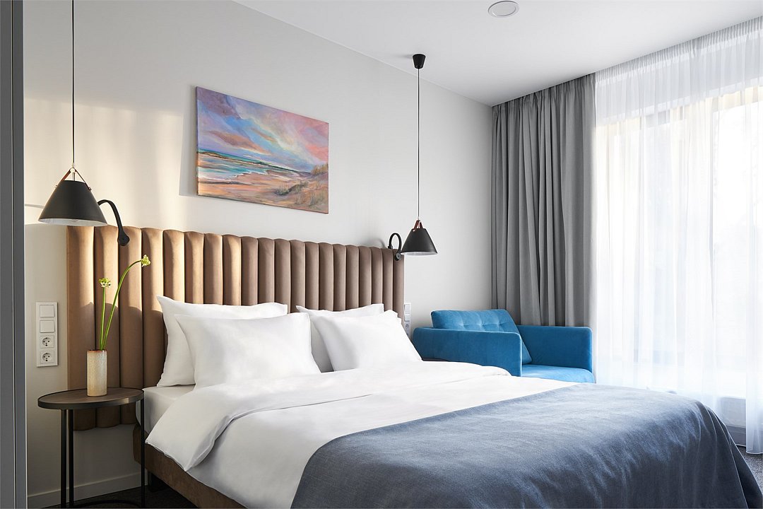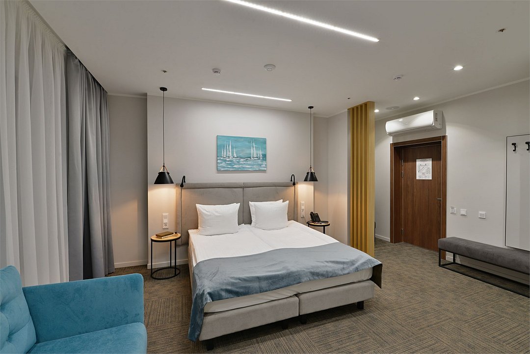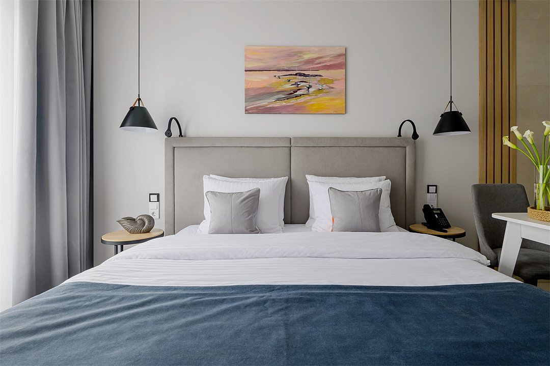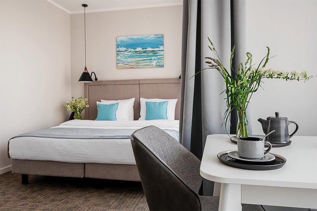 Стильные однокомнатные номера площадью 26 кв.м. предназначены для размещения двух гостей. Номер располагается на 6 этаже и оборудован балконом, что позволяет в полной мере насладиться морским бризом и живописной панорамой. Прекрасный выбор для гостей, которые хотят полюбоваться красотами неба над Балтикой.Услуги и удобства