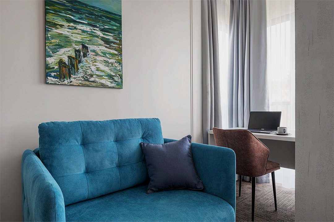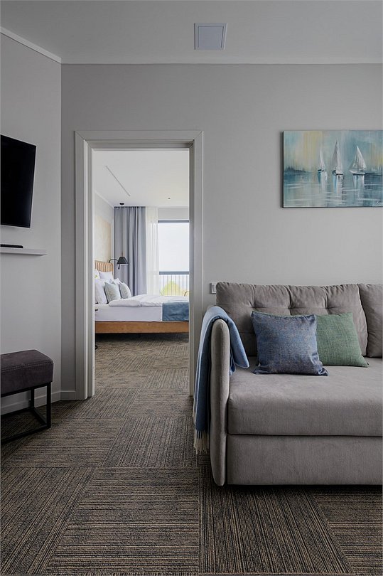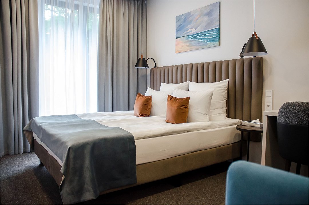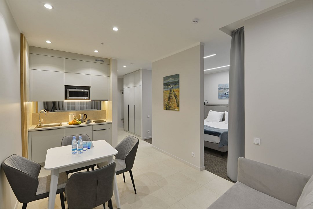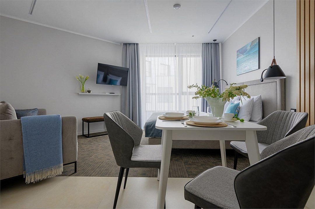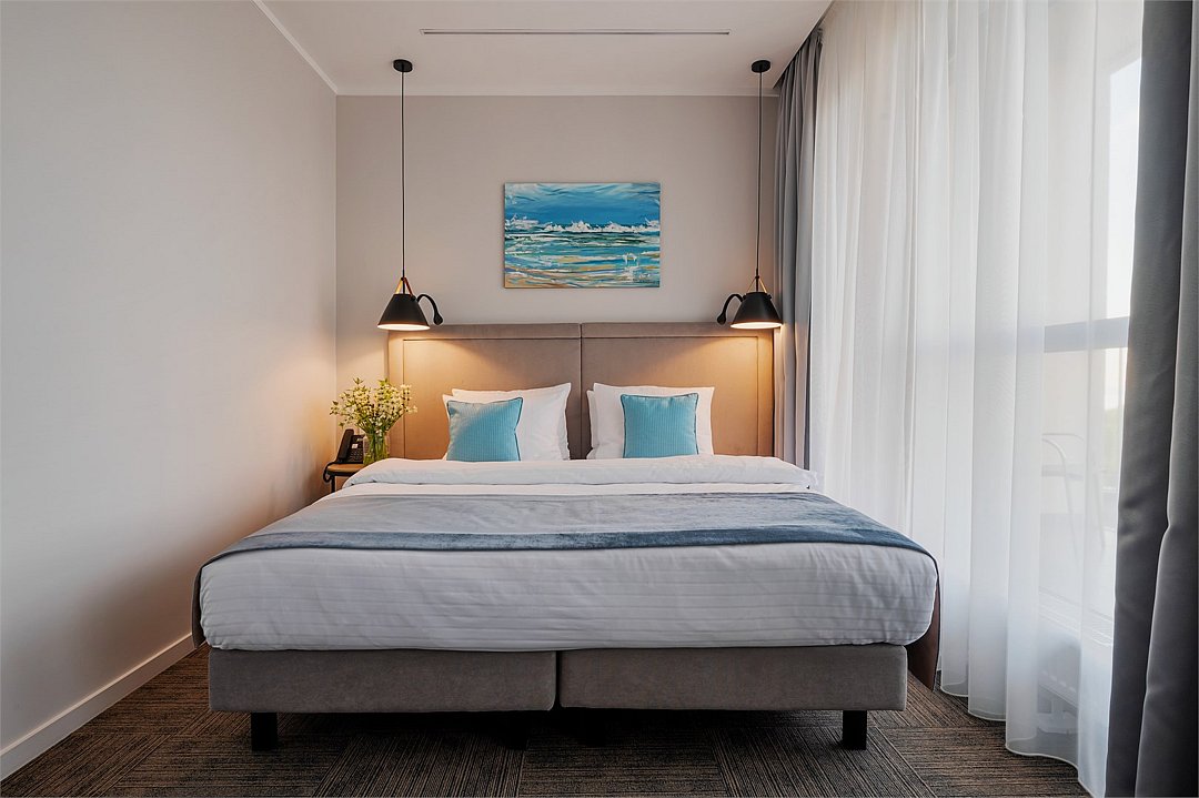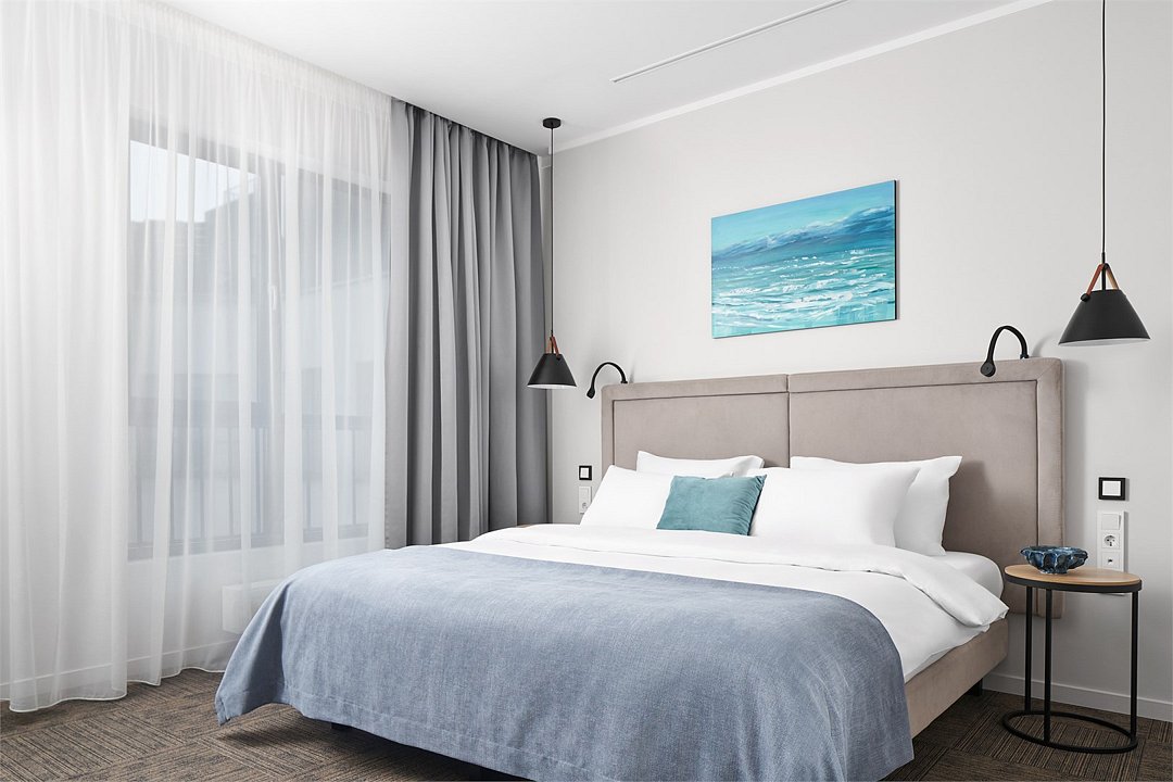 Стильные однокомнатные номера площадью 26 кв.м. предназначены для размещения двух гостей. Номер располагается на 6 этаже и оборудован балконом, что позволяет в полной мере насладиться морским бризом и живописной панорамой. Прекрасный выбор для гостей, которые хотят полюбоваться красотами неба над Балтикой.Услуги и удобства