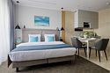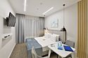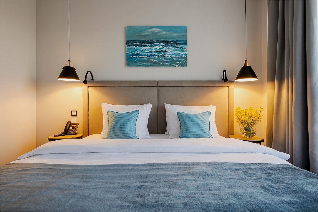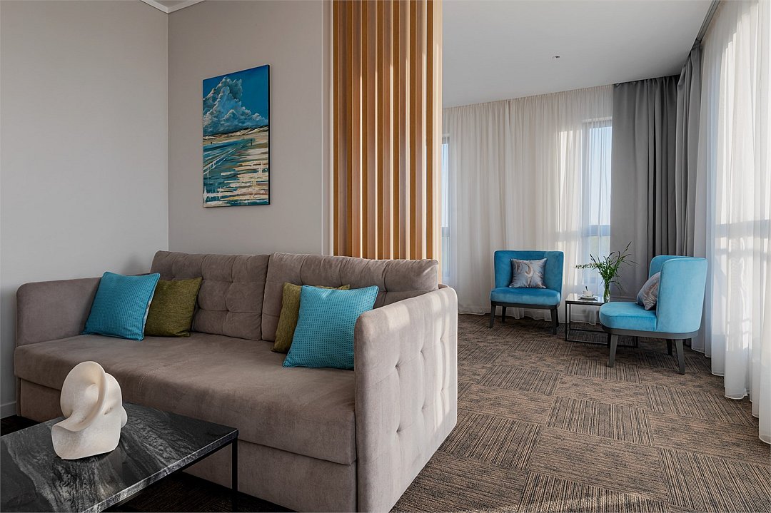 Премиальные номера площадью 41–53 м², расположенные на четвертом, пятом и шестом этажах отеля, рассчитаны на проживание до четырех человек. В спальне — кровать Super King size, в гостиной — диван-кровать. Все номера оборудованы балконами, вид из которых открывается в сторону моря. Номера оснащены ванной или душем, мини-кухней и рабочей зоной. Подходят как для романтических выходных, так и для длительного отдыха с семьей.Услуги и удобства
