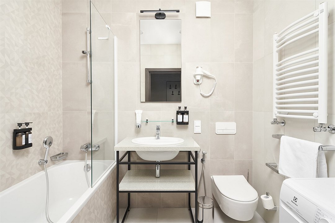 Wi-Fi, телефон, холодильник, кондиционер, фен, система безопасности, электронные замки, плита для приготовления пищи, микроволновая печь, утюг, ванна или душевая кабина, теплый пол, халаты, банные полотенца, тапочки, гигиенические средства, косметические средства, две односпальные или большая двуспальная кровать, гладильная доска, кресла, стулья, шкаф для одежды, вешалки, обеденный стол, зеркало, две комнаты, чайный набор, набор посуды, обслуживание номеров, сейф, посудомоечная машина, стиральная машина, чайник, раковина, ковровое покрытие, отопление, вид на город, плиточное покрытие, кухонная утварь, туалет, вид на парк, сушилка для белья, цифровое тв, раскладной диван, раскладное кресло, телевизор с плоским экраном, мини-холодильник, мини-кухня, шкаф-купе, теплые полы, номер для некурящих, гигиенический душВ гостиничном номере