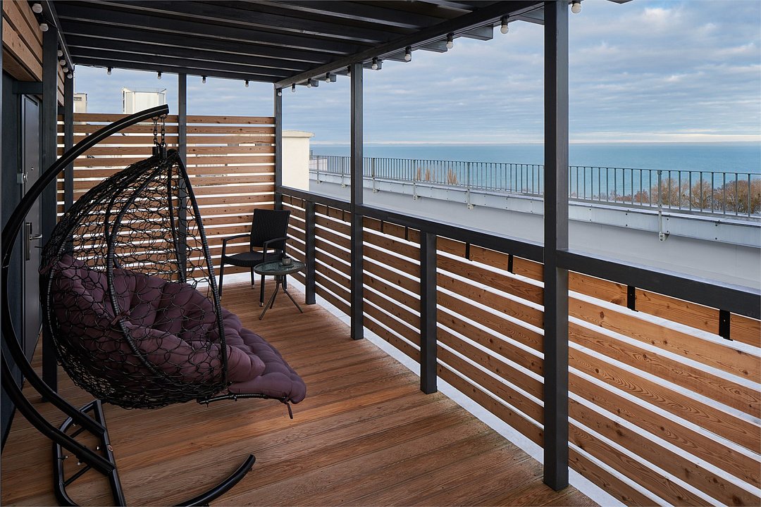 Sky View Terrace — уникальная студия с большой террасой на самом высоком, 11-м этаже отеля. Из окон открывается вид на зеленые кроны деревьев, а с террасы — на море, что создает ощущение покоя и уединенности. Несмотря на компактность (20 м²), номер идеально продуман: кровать Queen size, душ и мини-кухня. Это выбор для романтического отдыха и тихих вечеров вдвоем. Поскольку вход в номер осуществляется через открытую террасу, при неблагоприятных погодных условиях (дождь, снег, сильный ветер) возможны неудобства — просим принять это во внимание.Услуги и удобства