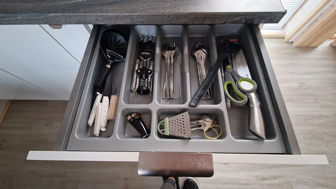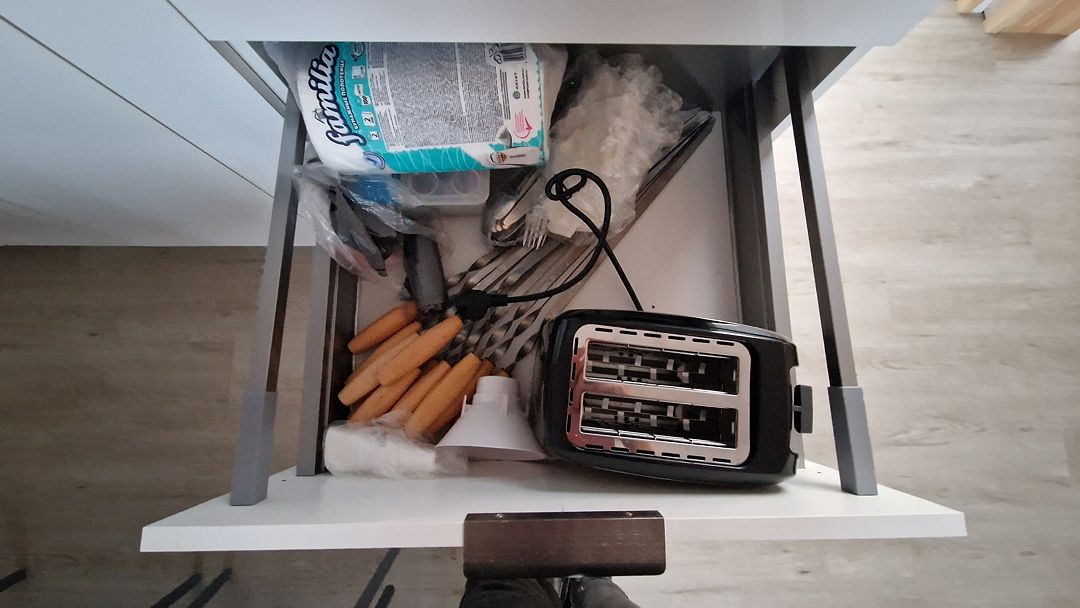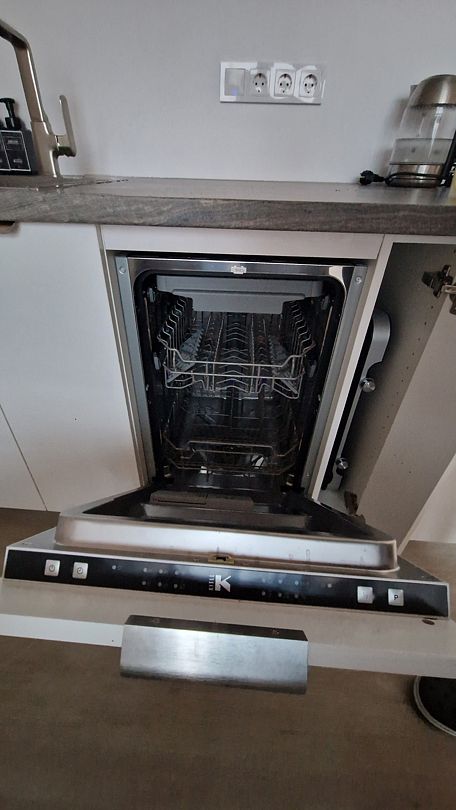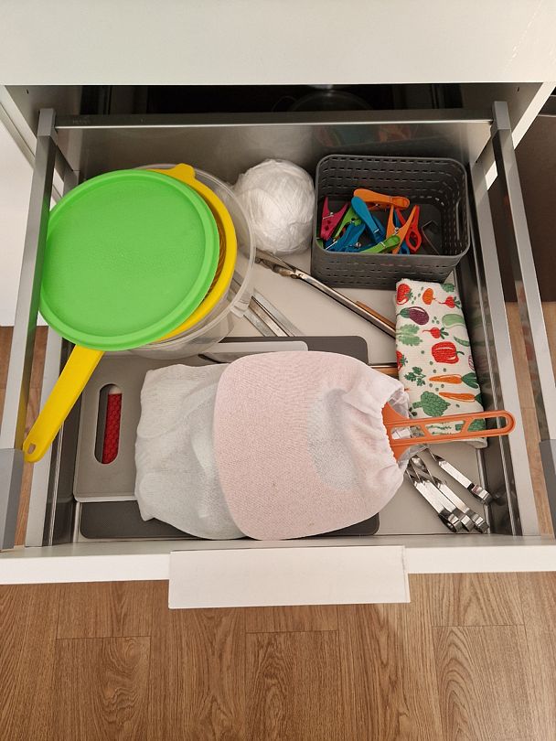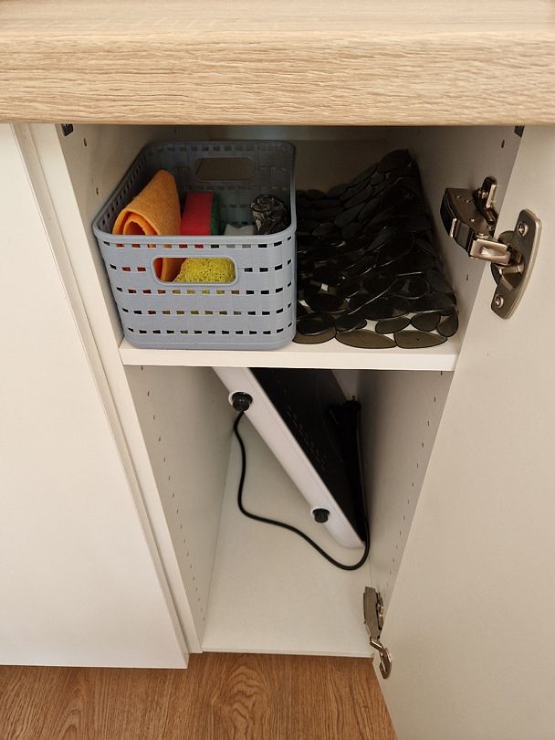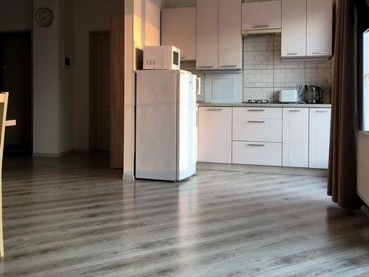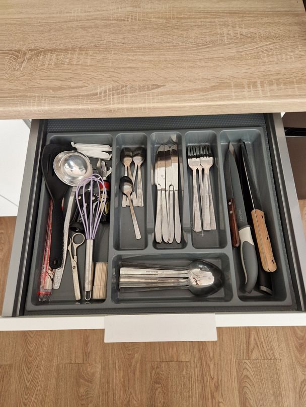 Кухня укомплектована всем необходимым. Газовая поверхность, вытяжка, холодильник с морозильной камерой, микроволновая печь, чайник, тостер, сэндвичница, миксер-блендер, штопор, бокалы, свет под шкафчиками, чай-кофе, необходимая кухонная утварь, средства для уборки, проточные фильтры. Газовый котел и собственный бойлер позволяют с помощью пульта устанавливать комфортную температуру воды и воздуха. Питьевая вода «Айсберг» (баллон 20 литров) входит в стоимость проживания.
