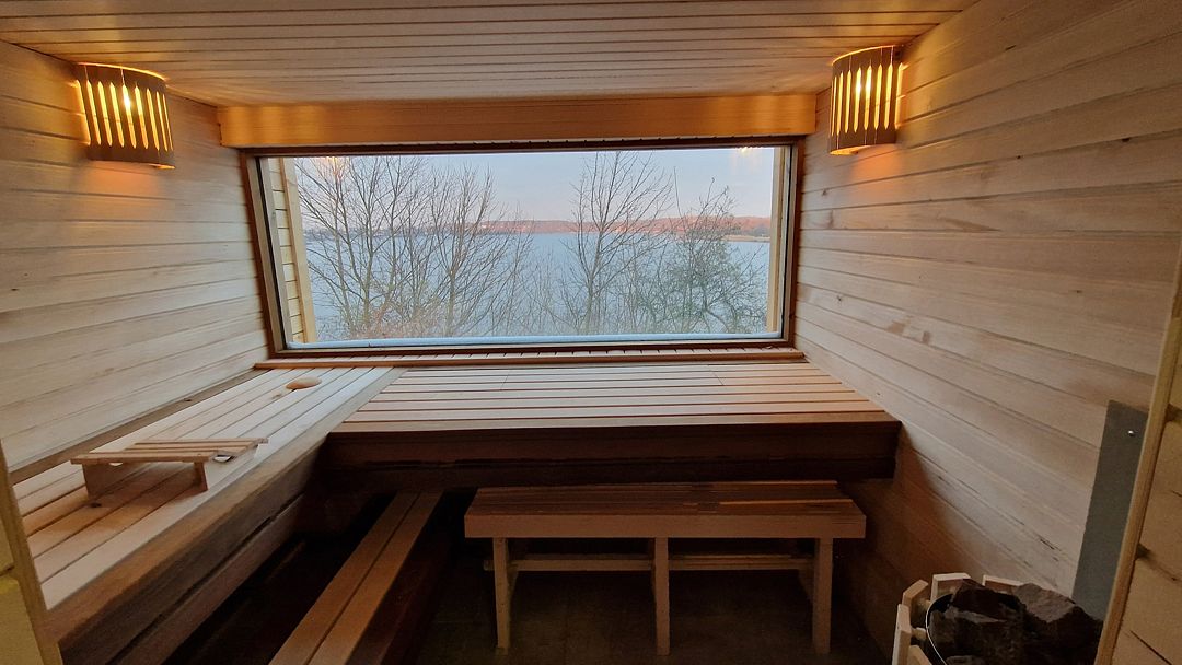 Читать полностьюУютная сауна с панорамным видом на озеро способна вместить до шести человек. В ней вы найдете все необходимое для комфортного отдыха: банные шапки, полотенца, кроксы, халаты, гель для душа, шампунь и кондиционер.