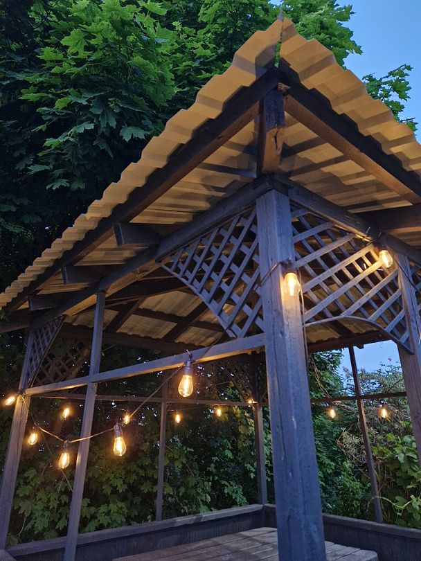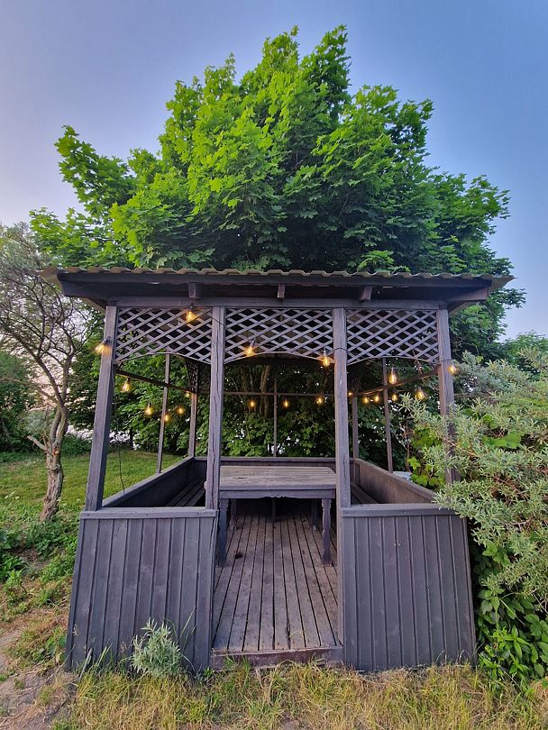 Под мягким светом гирлянды вы сможете насладиться ароматными блюдами, приготовленными на огне, и провести незабываемое время в компании ближайших людей, наслаждаясь атмосферой уюта и комфорта на природе.