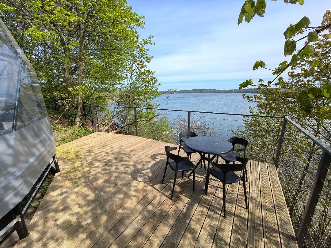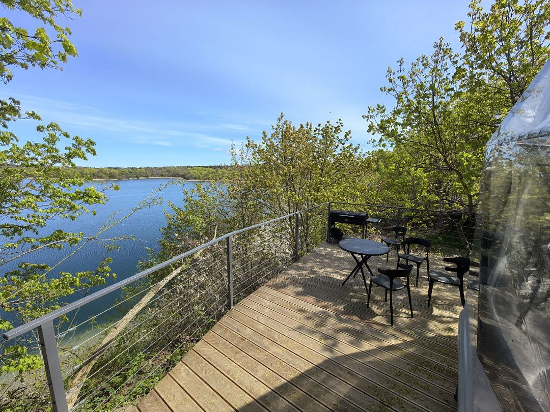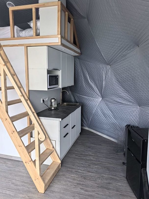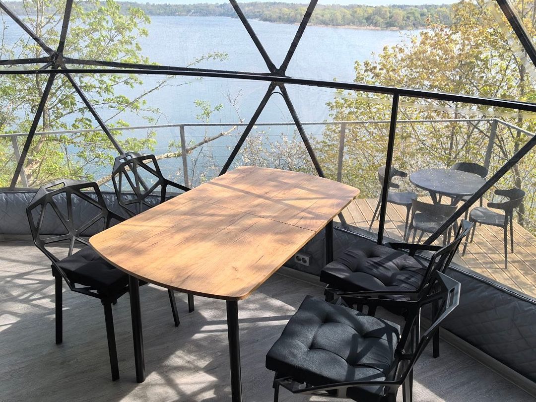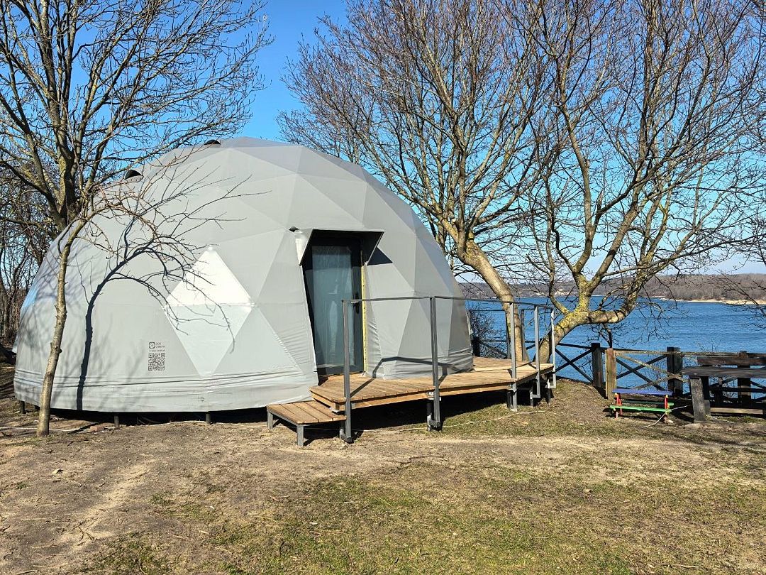 Комфортабельный круглогодичный купольный дом "Атлантика" №5 с шикарным видом на озеро и большой террасой. Построен в 2025 году. Заселение бесконтактное по электронному коду 24/7.