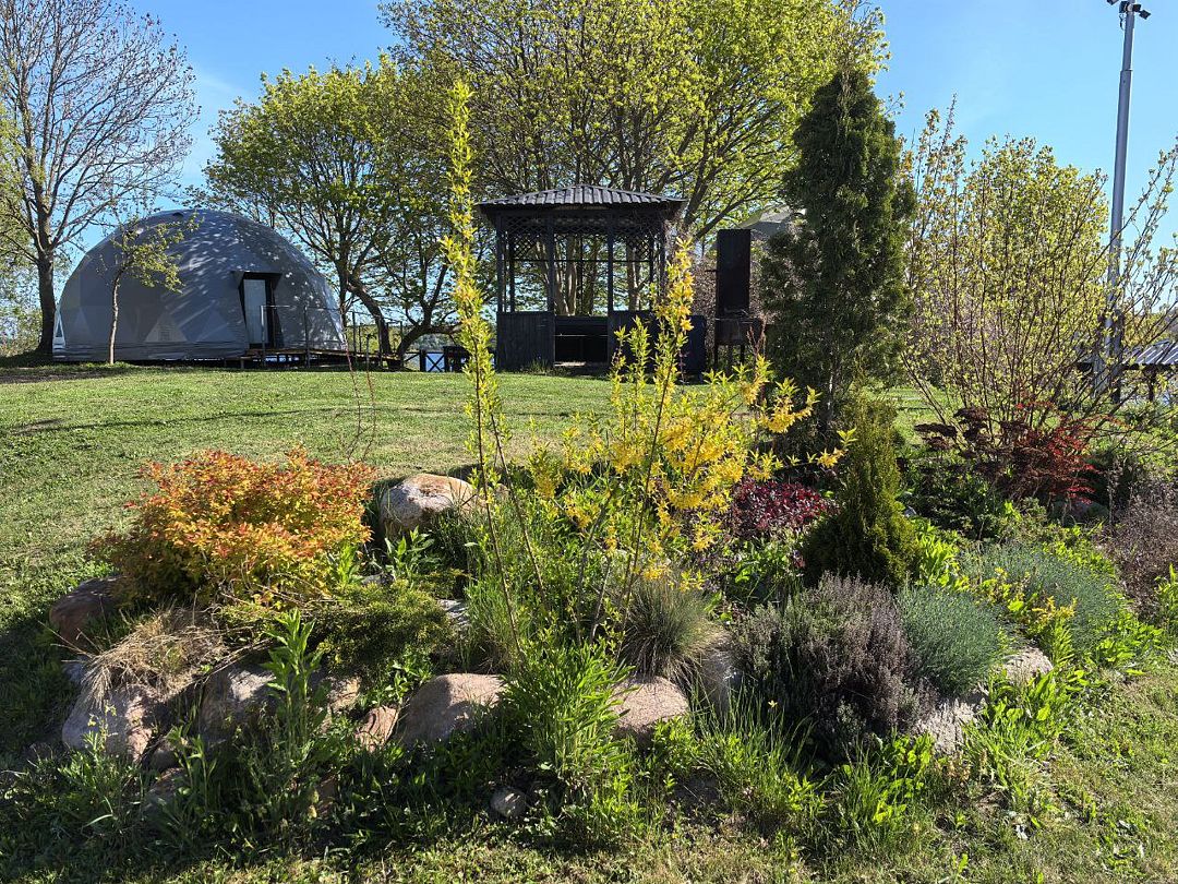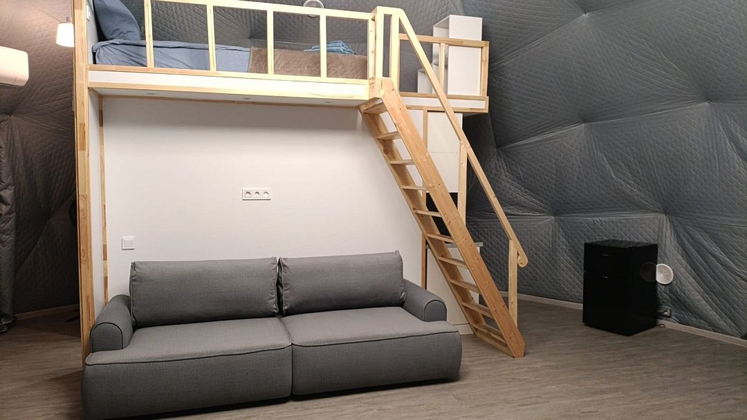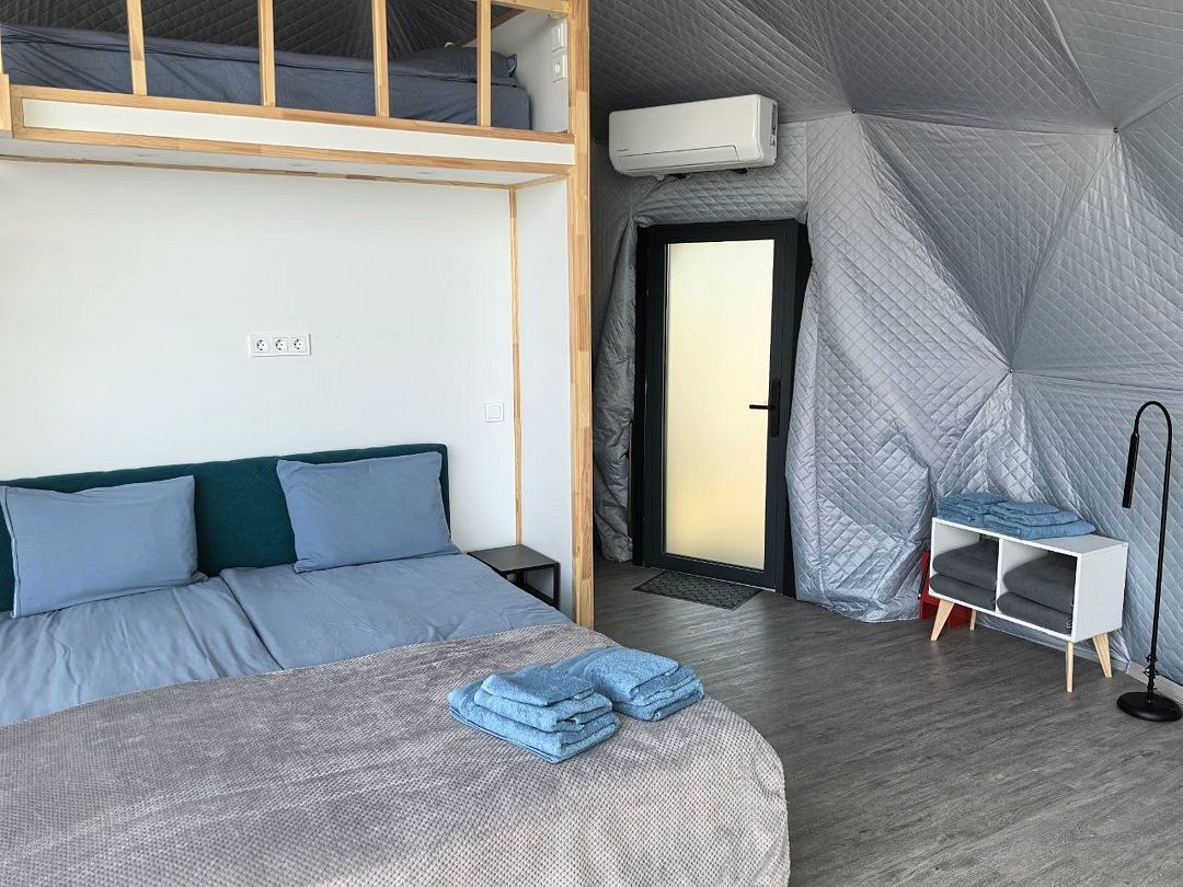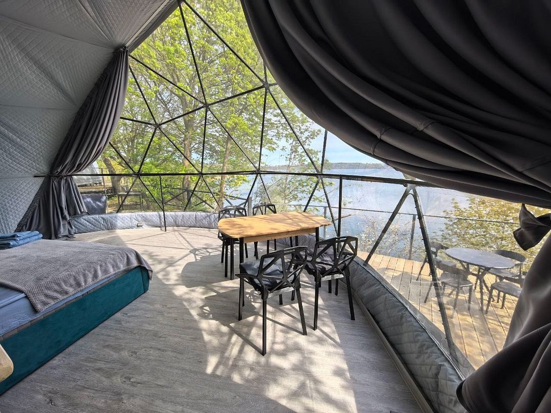 Круглогодичный купольный дом "Тихий океан" №6 базы отдыха "Кусто" в Янтарном, рассчитанный на 6 гостей. Заселение бесконтактное 24/7 по электронному коду.