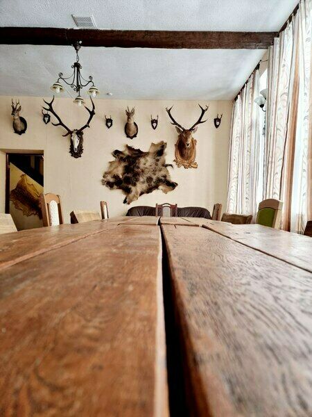- В наличии 6 комнат, каждая их которых оборудована отдельным с/у и с комфортом вмещает от 2х до 4х гостей. Так же большой каминный зал, где можно всем вместе проводить время. Ужинать у камина, играть в настольные игры, да и просто пообщаться с друзьями.