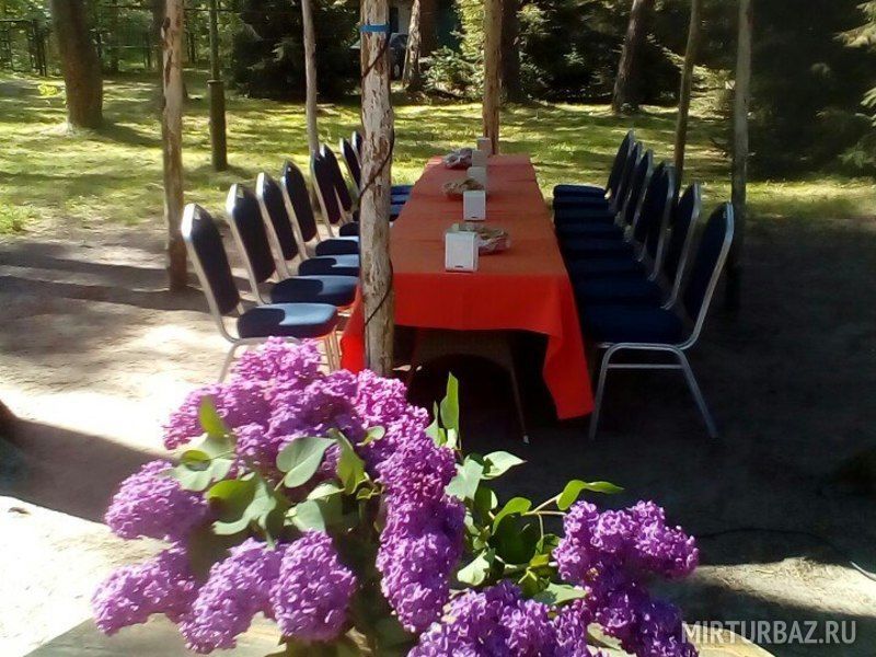 Туристская база располагает просторной озелененной территорией, на которой размещены места для пикников, спортивно-игровые площадки, гостевой корпус с каминным залом для банкетов и деловых мероприятий. Окрестный лес подходит для пеших и велосипедных прогулок, сбора грибов и ягод. Недалеко от базы расположено небольшое лесное озеро.