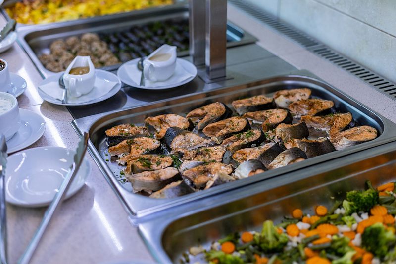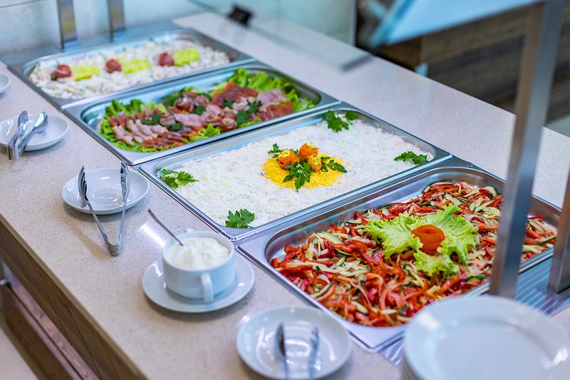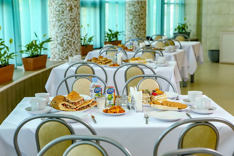 Просторная столовая с видом на море приглашает своих гостей насладиться изысканными кулинарными изысками в формате полного пансиона «Шведский стол». Здесь вы найдете богатый выбор блюд на любой вкус.