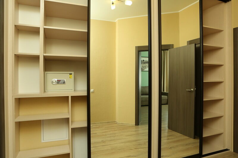 Большие зеркала по периметру зала помогут вам контролировать правильность выполнения упражнений, а комфортный диван с плазменным телевизором станет прекрасным местом для отдыха между подходами.